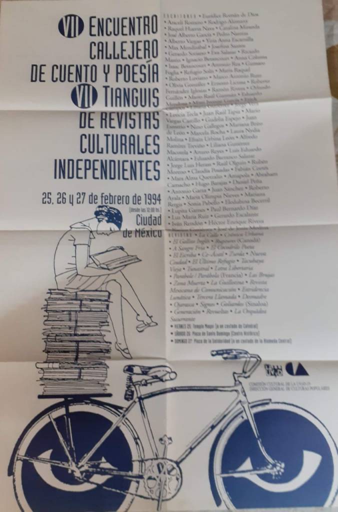 Participa en el VII Encuentro Callejero de Cuento y Poesía, en febrero de 1994, donde lee poesía junto a escritores como José Agustín y Carlos Monsiváis (QEPD, ambos).