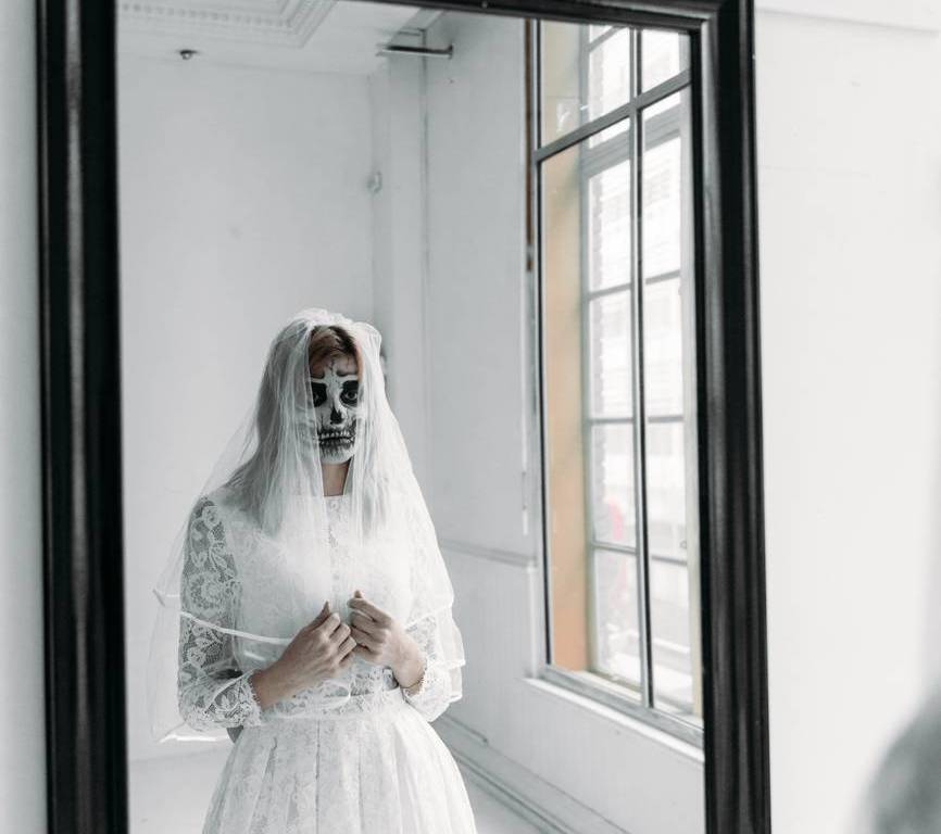 Entonces atendiendo al mensaje escrito tomó el espejo suelto y lo puso frente al espejo central, logrando mirarse repetidamente hacia el infinito, en una serie de espejos repetidos que se empequeñecían donde ella repasaba sus rasgos y podía mirarse sin fin.