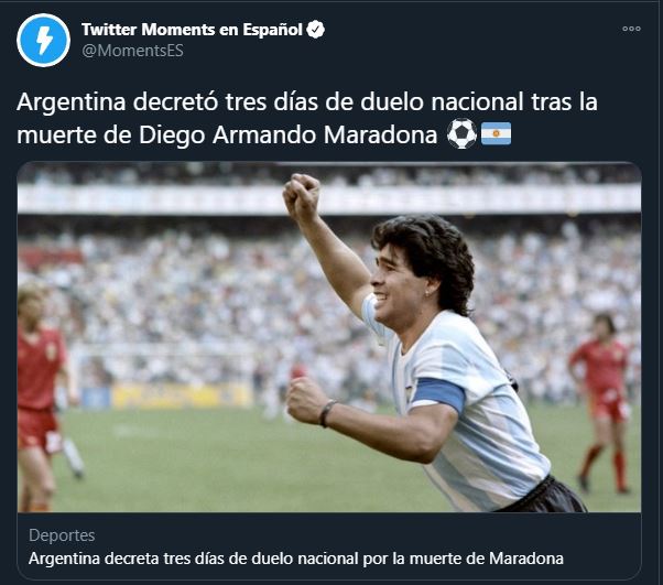 La noticia en redes sociales // Imagen Twitter Moments en Español @MomentsES