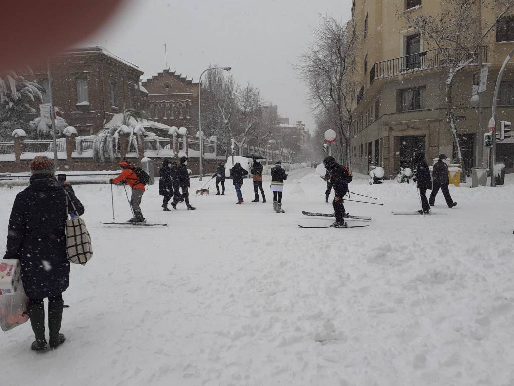 Se vieron estampas invernales jamás vistas, ciudadanos esquiando por las calzadas como si de una pista invernal en altura se tratara. Los samoyedos, huskies y malamutes y resto de razas de perros nórdicos disfrutando del paseo, siento testigos de algo insólito nunca antes vivido en la jungla de asfalto por la que suelen pasear a diario.