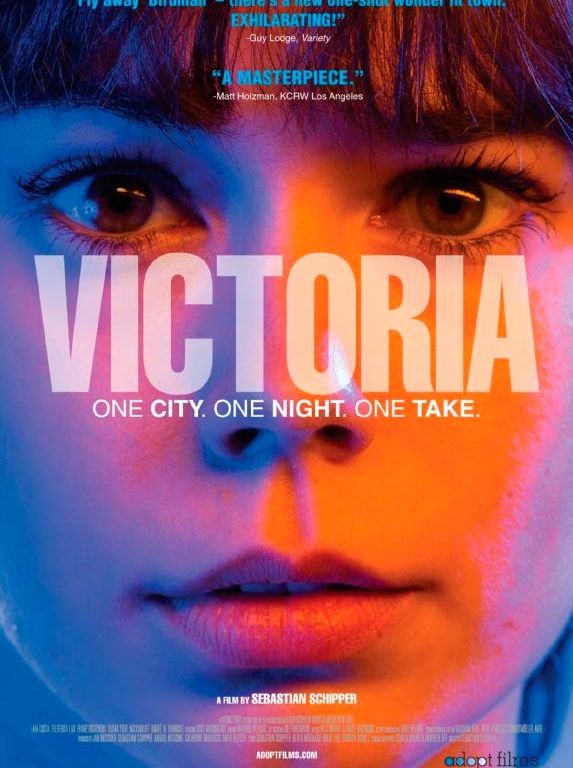 Ficha técnica: Título original: Victoria Año 2015. Duración 140 min. País Alemania. Director: Sebastian Schipper. Guión: Olivia Neergaard-Holm, Sebastian Schipper y Eike Frederik Schulz. Fotografía: Sturla Brandth Grøvlen. Música: Nils Frahm. Edición: Olivia Neergaard-Holm. Reparto: Laia Costa (Victoria), Frederick Lau (Sonne), Franz Rogowski (Boxer), Burak Yigit (Blinker), Max Mauff (Fuß), André Hennicke (Andi), Anna Lena Klenke (Junge Mutter). Productor: Catherine Baikousis, Christiane Dressler, Jan Dressler, Anatol Nitschke y Sebastian Schipper. Productora: MonkeyBoy / Deutschfilm / Radical Media. Género: Thriller. Drama.