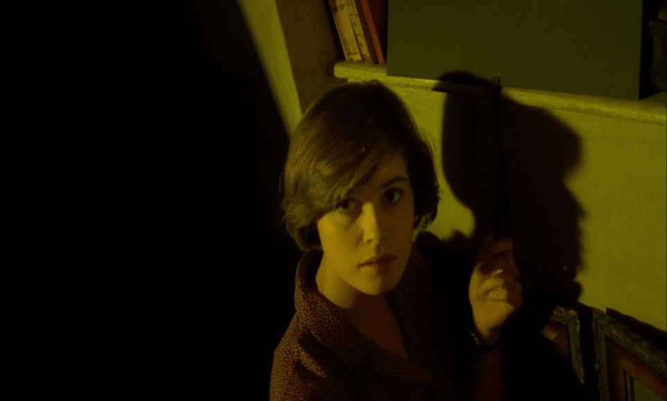 De manera magistral los escenarios lúgubres y luminosos aparecen de manera constante de acuerdo con lo que les ocurre. Ella siente un dolor en el pecho, se tambalea y hojas secas por montones son lo que encuentra para sostenerse. Destaca la cámara que por momentos nos muestra lo que le pasa y en otros nos da la perspectiva desde sus ojos en geniales planos subjetivos.