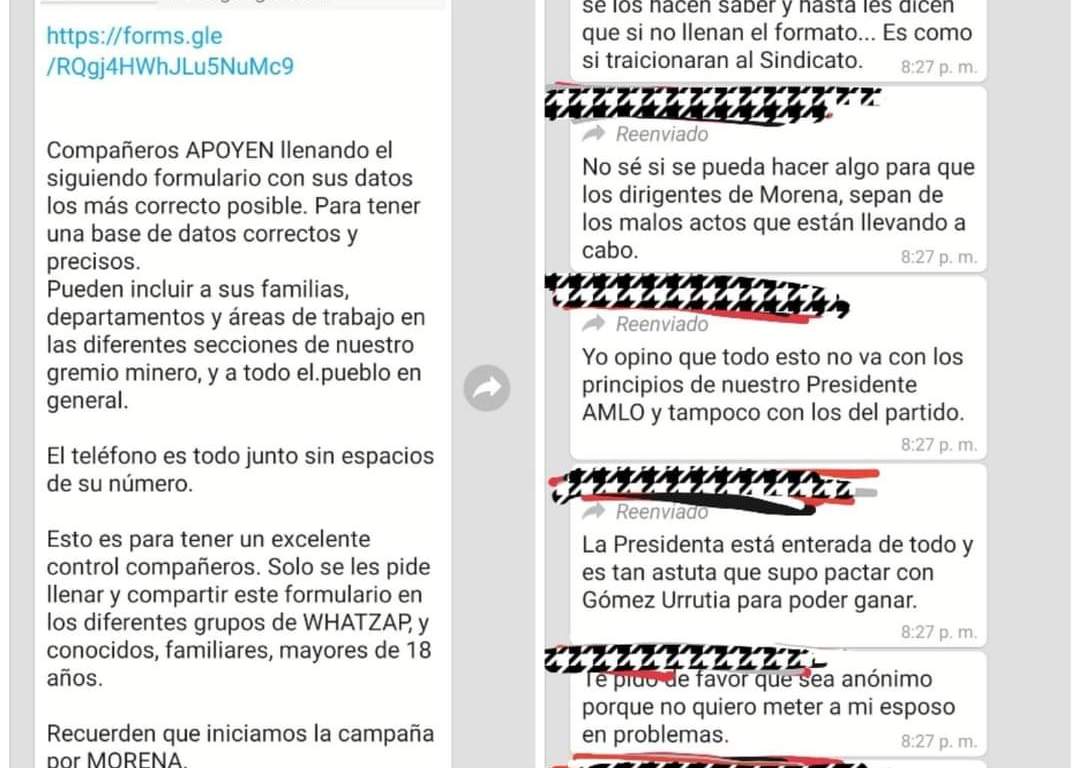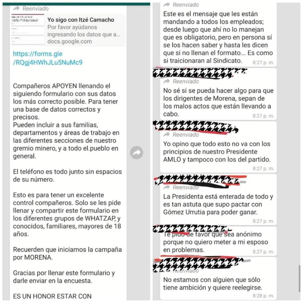 La gente del sindicato del ayuntamiento de Lázaro Cárdenas, mando un  mensaje  a un grupo de WhatsApp del sindicato minero para pedir  que  «apoyen» a   la alcaldesa de Lázaro Cárdenas, Itzé Camacho, quien está  buscando reelegirse a costa de lo que sea.