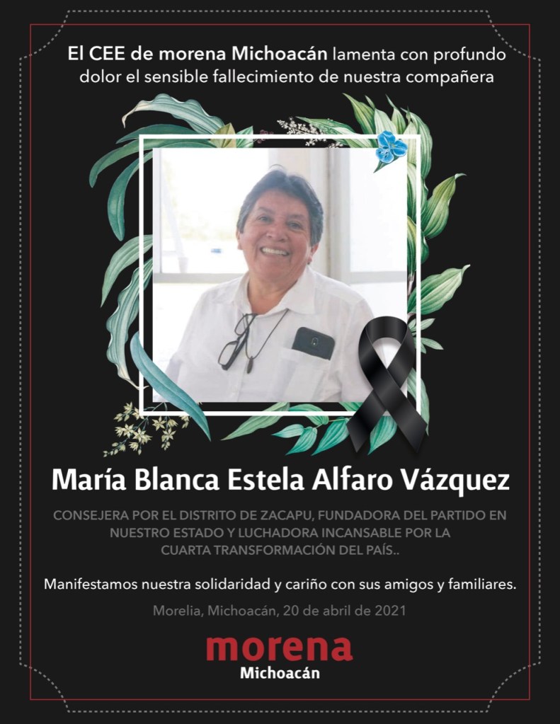 Blanca Alfaro Vázquez, quien buscaba la diputación local por el Distrito 7 con cabecera en Zacapu sufrió un paro cardiaco que le costo la vida.