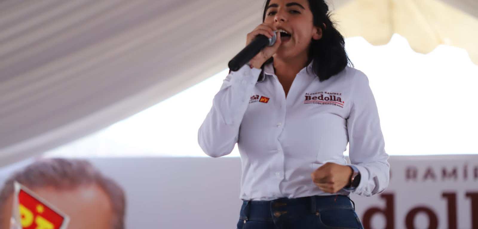 18:35 en calidad de animadora arranca el evento una hermosa joven que al preguntar ¿Quién es?, supe que era Giulianna Bugarini Torres, vocera del candidato Alfredo Ramírez Bedolla, quien aún no tardaba de saludar al respetable, cuando un grupo de jóvenes focalizados al pie del templete comenzaron a coro ¡que se baje, que se baje, que se baje! El tono no pasó desapercibido ni para Giulianna ni para el personal del Staff del candidato Ramírez Bedolla, la guapa vocera hizo gala de tablas políticas y empezó a decir el nombre de los asistentes, Raúl Morón Jr, El hijo de Arróniz que no recuerdo su nombre, Iván Pérez Negrón, con esto levanto al ánimo del avispero acallando las voces que pedían que se bajara, después con mucho acierto llamo a la unidad de todos los candidatos y actores políticos para lograr el triunfo contundente de Morena y empezó a soltar el micrófono con Raúl Morón Jr. Que no dijo nada sustantivo, Arróniz, tampoco nada importante, siguiendo con Iván Pérez Negrón, que entro muy animoso y hasta brincando como rock star, su discurso fue de más a menos terminando por culpar a Alfonso Martínez de unas Lámparas, se veía que quería hacer tiempo para la llegada de los fuertes.