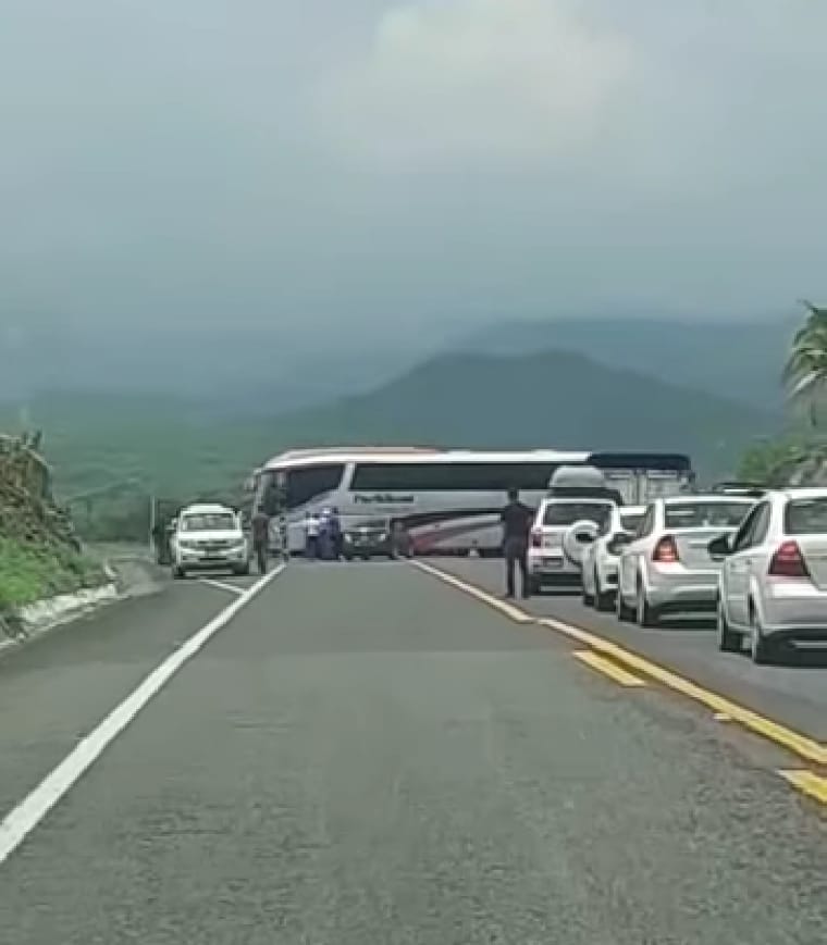 Los inconformes colocaron atravesado un autobús de la línea Parhikuni en un sentido y un tráiler en el otro para impedir el paso de los automovilistas que circulan por la zona.