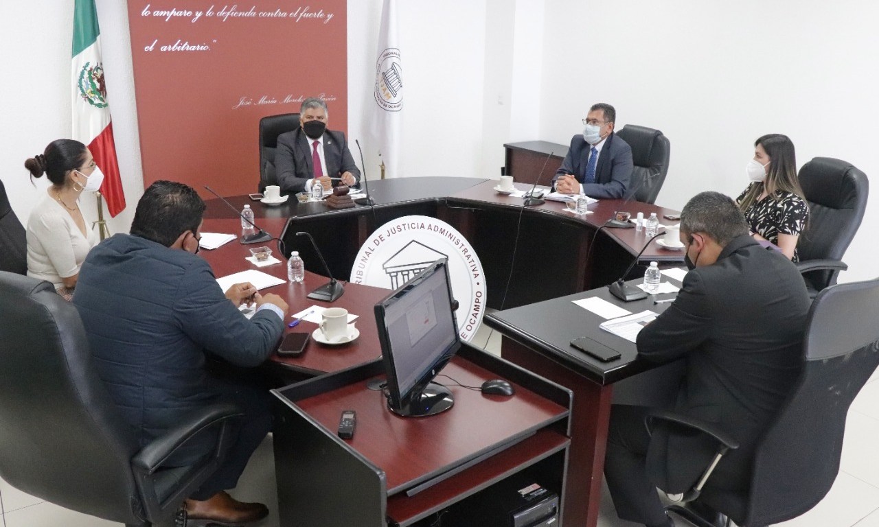 Morelia, Michoacán, 02 de agosto de 2021. El Pleno del Tribunal de Justicia Administrativa del Estado de Michoacán (TJAM) acordó este día, nuevas disposiciones sanitarias con el objeto de salvaguardar la integridad física de sus colaboradores y usuarios, ante la llamada tercera ola de contagios por SARS-CoV-2 en nuestra entidad.