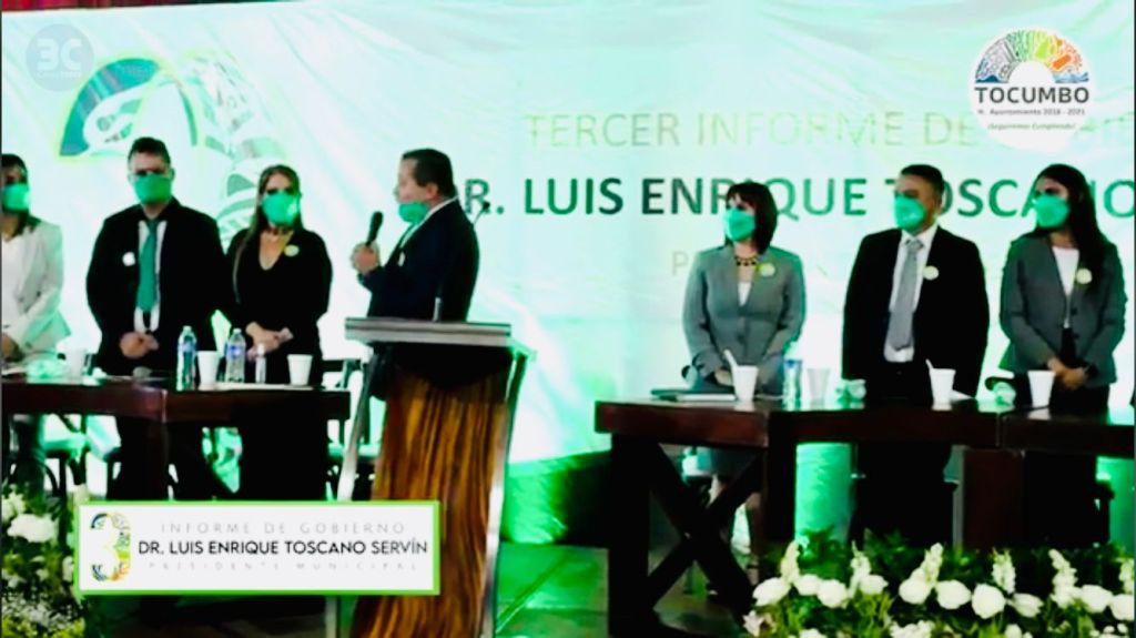 En el marco de su tercer informe de gobierno, el Doctor Luis Enrique Toscano Servín pronunció uno de sus más emotivos discursos que ha dado a lo largo de los seis años que lleva como presidente municipal de Tocumbo. En el subrayó que su administración venció las adversidades que se presentaron durante la pandemia y brindaron una oportuna protección a las mujeres violentadas y a los menores de edad.