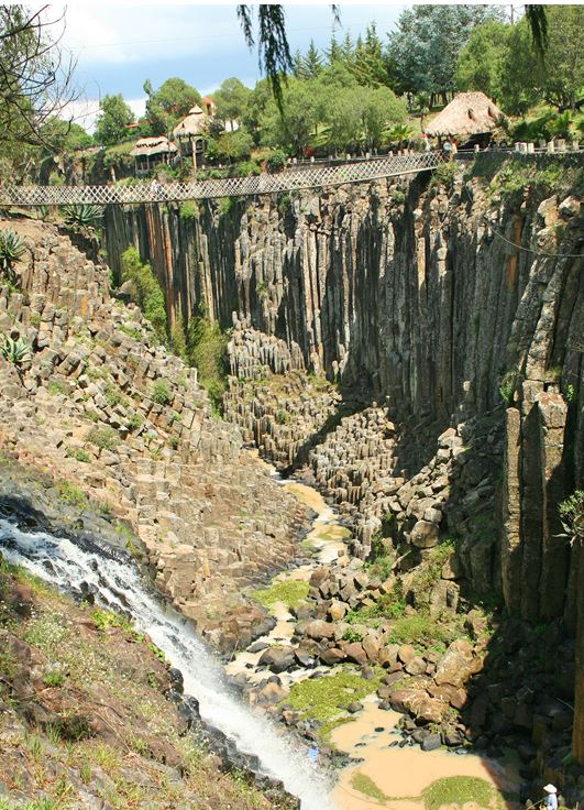 Si algo lo diferencia a los prismas basálticos del estado de Hidalgo es una pequeña garganta donde el agua que proviene lo hace de la presa de San Antonio Regla.