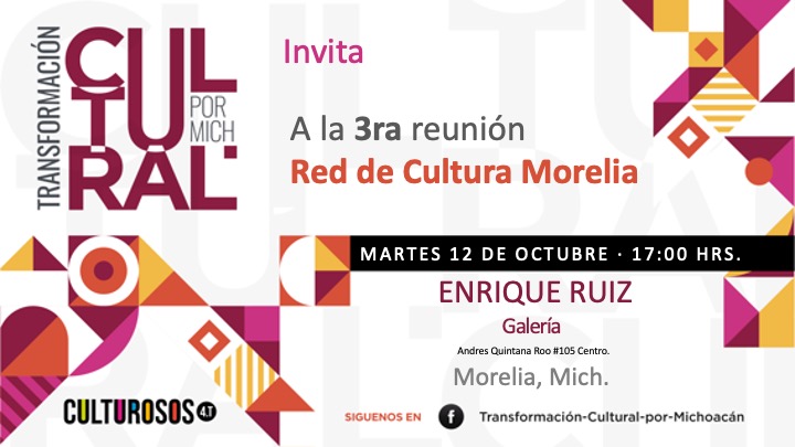 Te invita a la tercera reunión de la Red de Cultura de Morelia, donde afinaremos el plan de acciones de los siguientes meses.
