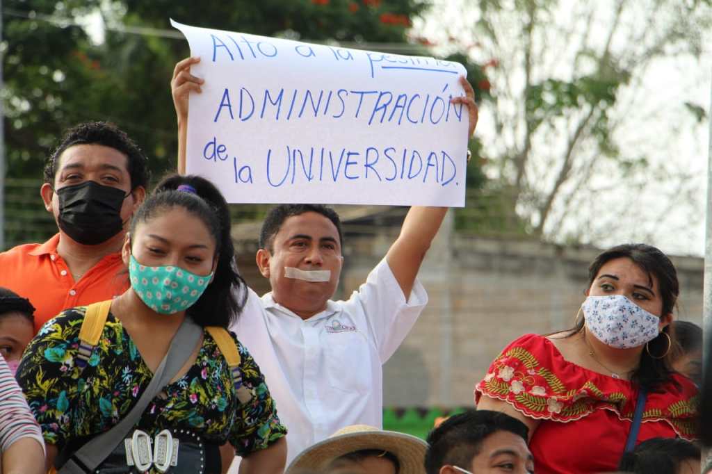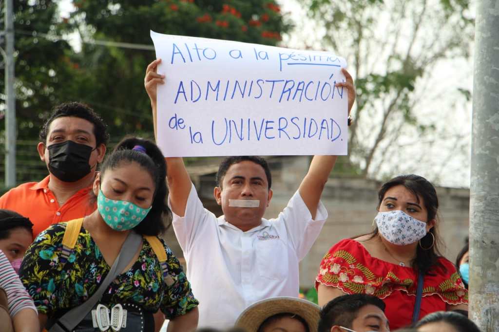 Ese rector seguro piensa está en una aldea de josemariamorelenses y no esperaba se le restregué en la cara los mensajes que se podían leer en pancartas: por sus malos manejos y brindar pésimas condiciones laborales, caciquismo y demás de la peor administración en los 15 años de la joven universidad. Es simple, a la vista está el desprecio de este sexenio con la enseñanza, sobre todo, la que tiene como objetivo el desarrollo del pueblo maya.