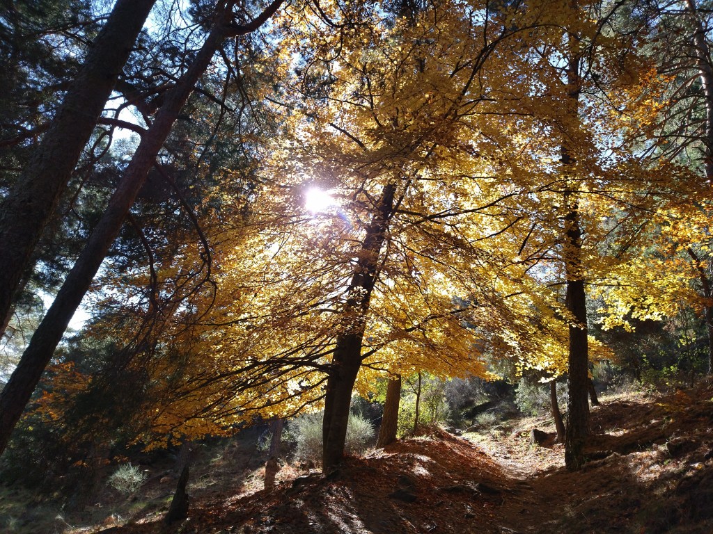 Hoy os vengo a contar una ruta que hago desde hace muchos años y varias veces al año. Hay un hayedo cerca de donde vivo que es una maravilla. Es pequeñito, pero tiene una magia especial. Cuando más bonito está es en el otoño, cuando las hojas de las hayas tornan en amarillo, ocre y aún están en el árbol, es todo un espectáculo. Pero ese momento dura muy poco y por eso hay que ir muchas veces para pillarlo en su mejor momento.