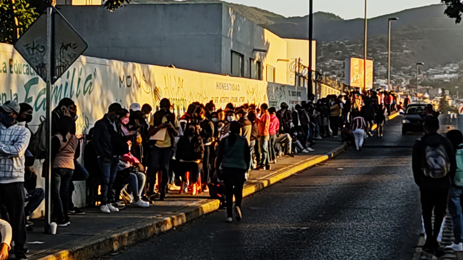 Largas filas de personas se registran desde tempranas horas para recibir su vacuna contra el Covid.
