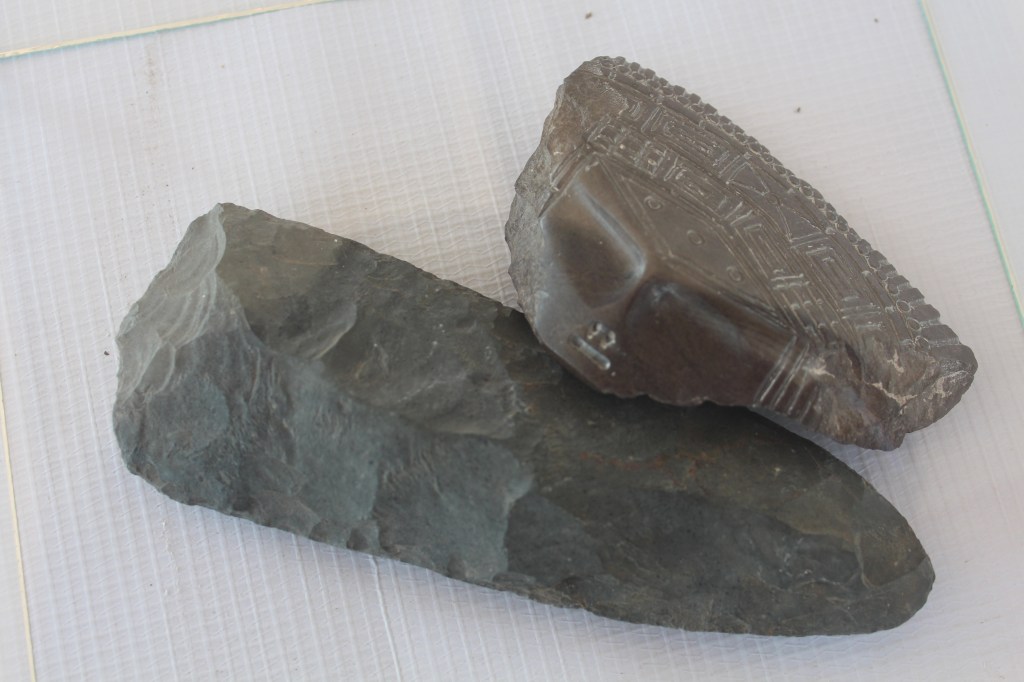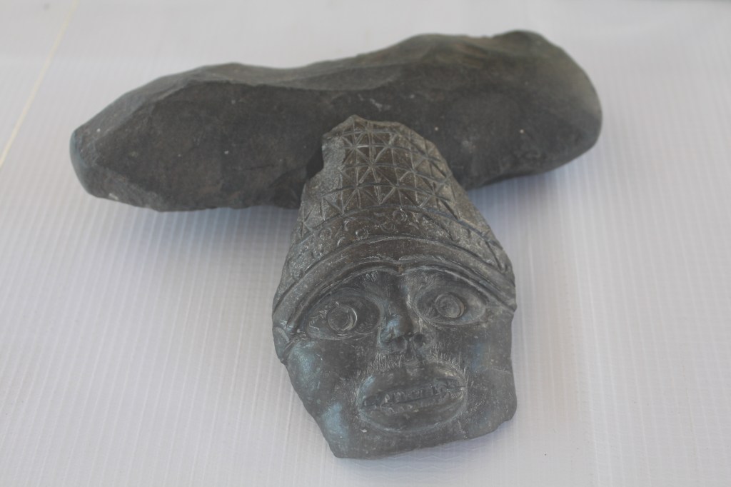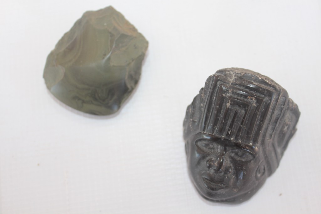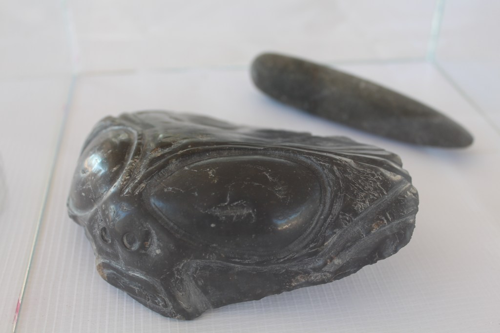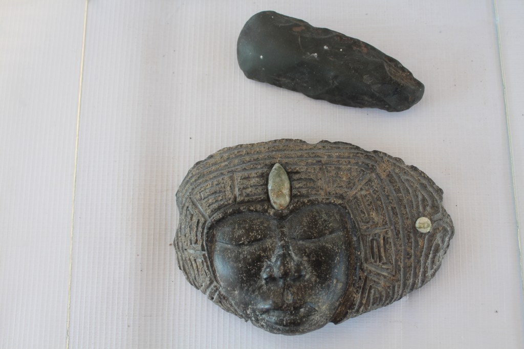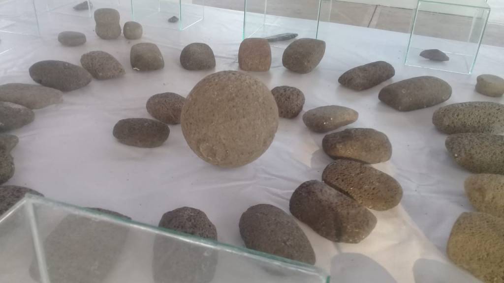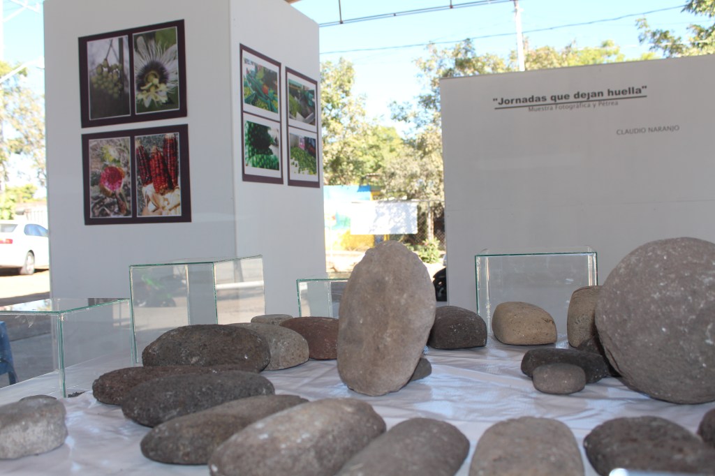 Claudio Naranjo dirige su mirada al centro de la exposición donde están algunas piedras de los ancentros de esta región. «Es una muestra arqueológica de los originarios de ésta zona. Tenemos manos de morteros que a través del tiempo han dejado huella».