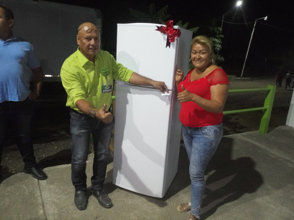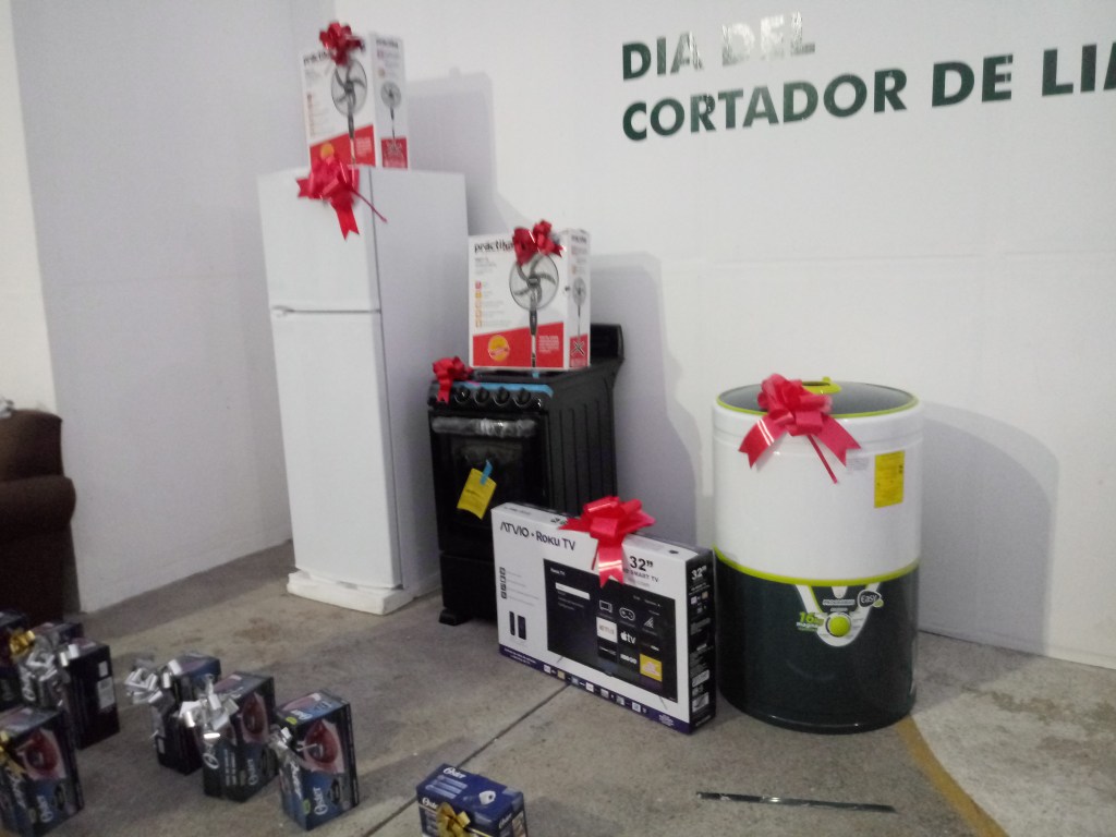 Se rifaron dos salas, dos refrigeradores, dos ventiladores, una estufa, una pantalla de televisión, un colchón, varias batidoras, licuadoras, redes para bajar limones.