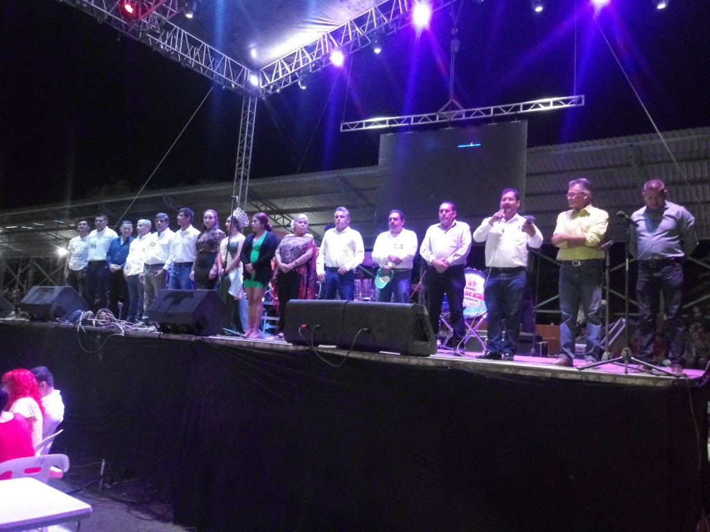 La primera en subir fue la Reina de la Feria, Jaquelin Pulido, luego el presidente del patronato J. Jesús Sanchez Lua, el secretario, el profesor David Morales Rubio, el tesorero Anoldo Díaz Verduzco, la sindico Cecilia Bonilla Lara, la regidora Sarai Espinoza, la regidora Alma Angelica Llamas, los regidores Jordan Jesus Gabriel y Jorge Soto. De igual manera reconoció a Cair Cazares, al maestro Margarito Zarate, quien coordinó la parte cultural, a Carlos Río Nañez, quien tuvo a su cargo la cuestión de la música tradicional y el espectáculo de los caballos bailadores, al regidor Leonel Figueroa, al secretario del ayuntamiento, Héctor García Rueda.