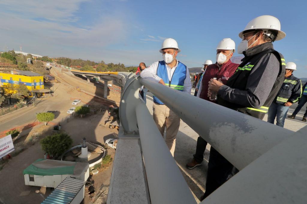 En compañía del secretario de Comunicaciones y Obras Públicas (SCOP), José Zavala Nolasco, el gobernador recorrió las vialidades en proceso y motivó a ingenieros y constructores a agilizar los trabajos para poder entregar a michoacanas y michoacanos estos distribuidores viales el 30 de abril.