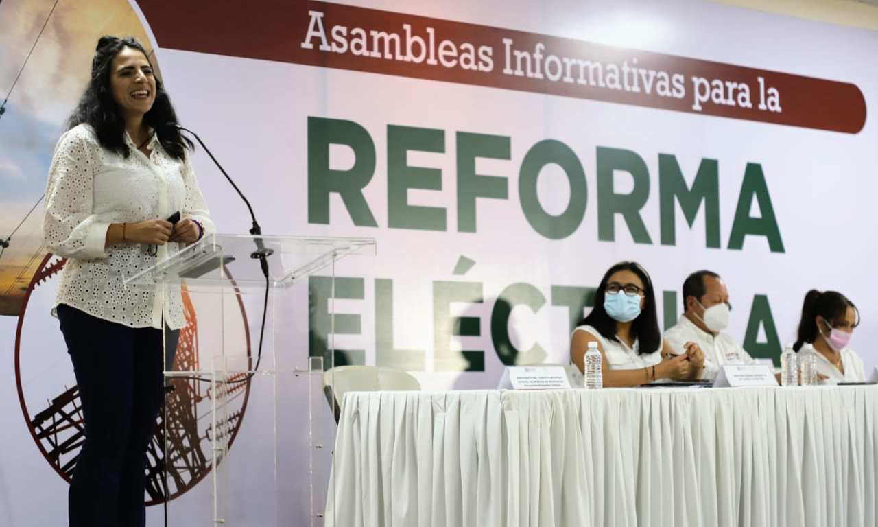 Giulianna Bugarini Torres, presidenta de Morena en Michoacán, afirmó que la Reforma Eléctrica urge en el país para recuperar los despojos de los bienes de la nación que se hicieron en el periodo neoliberal.