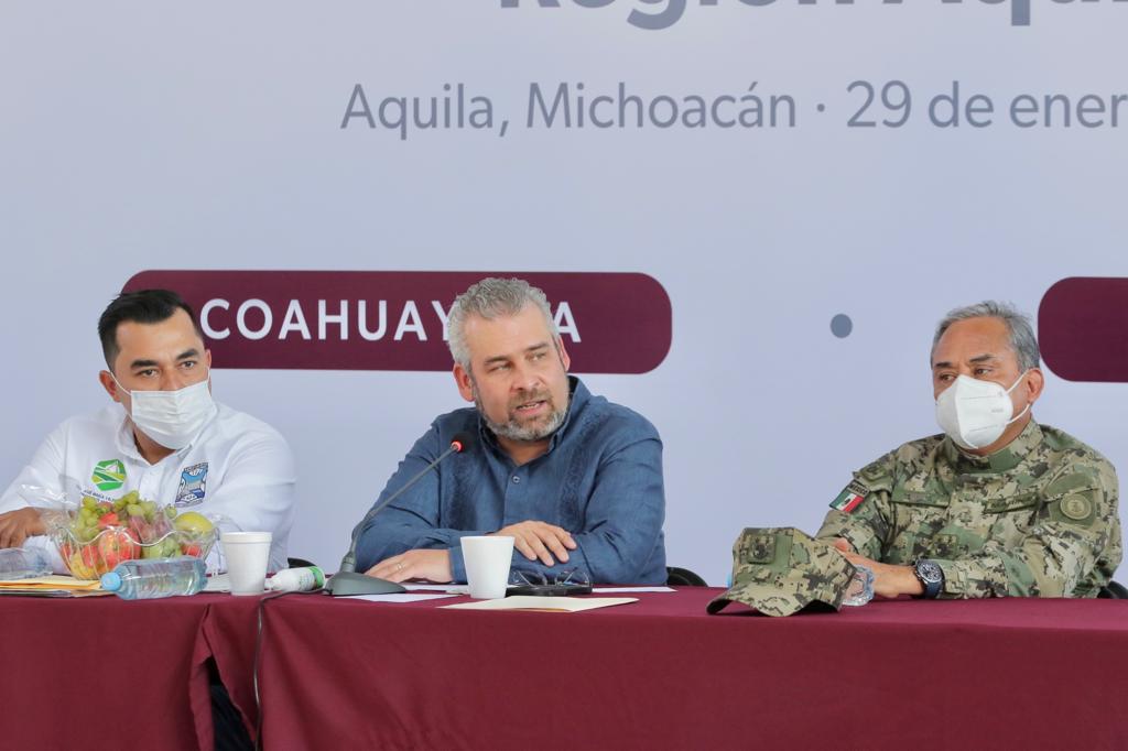 Ramírez Bedolla señaló que por instrucción del Presidente de la República, Andrés Manuel López Obrador, han sido desplegados desde Tepalcatepec hasta Aquila más elementos de la Secretaría de Marina, Ejército, y Guardia Nacional, gracias a lo cual se mantiene el libre transito en las carreteras, y algunas familias desplazadas por la violencia han comenzado a volver a sus hogares.