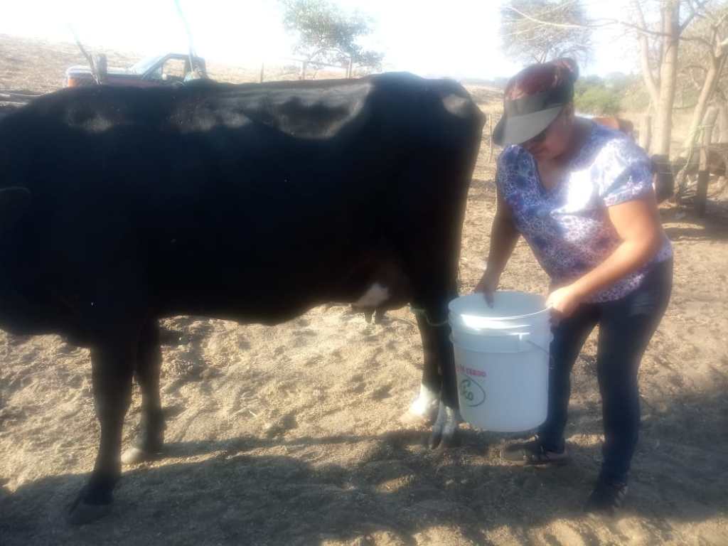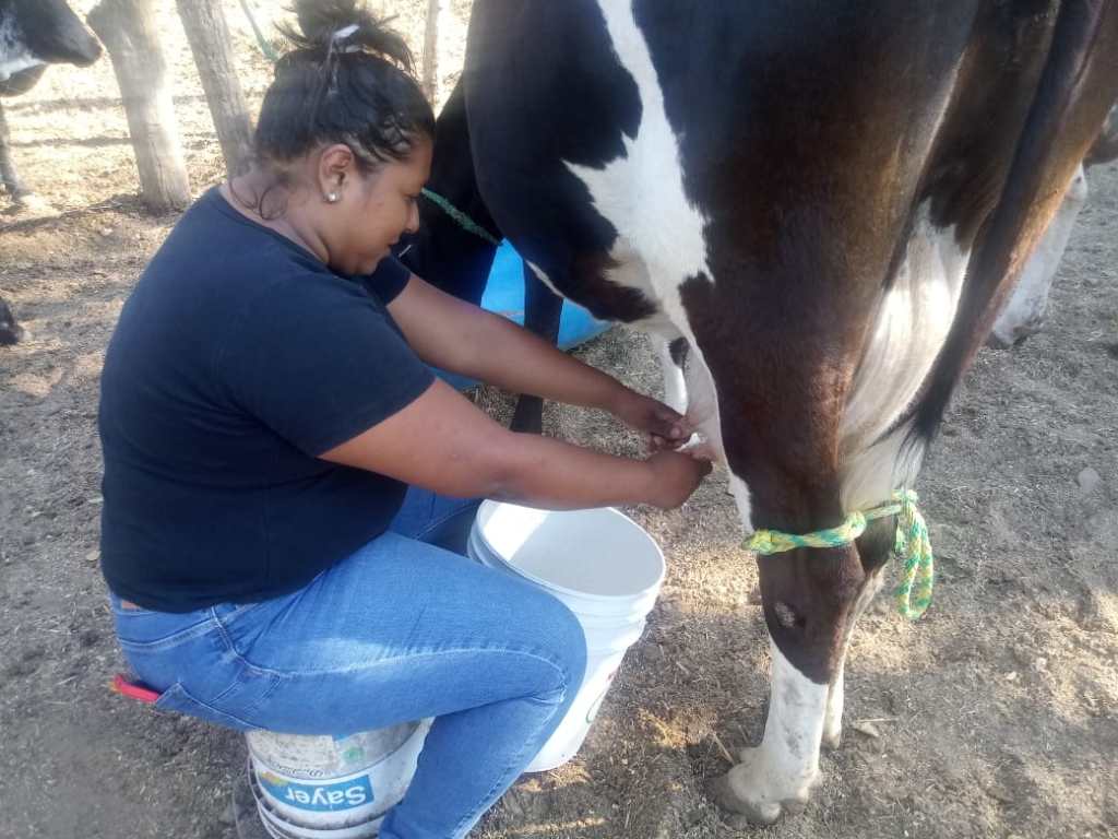 La hermana de Efraín alimenta a las vacas, becerros y al toro, también inyecta antibiótico a un animal que lo mordió una culebra y existe el riesgo de que sus ubres se pudran, se encuentran hinchadas y le duele amamantar. Para ella vale más la palabra que el dinero y le gusta tratar con gente que piensa lo mismo.