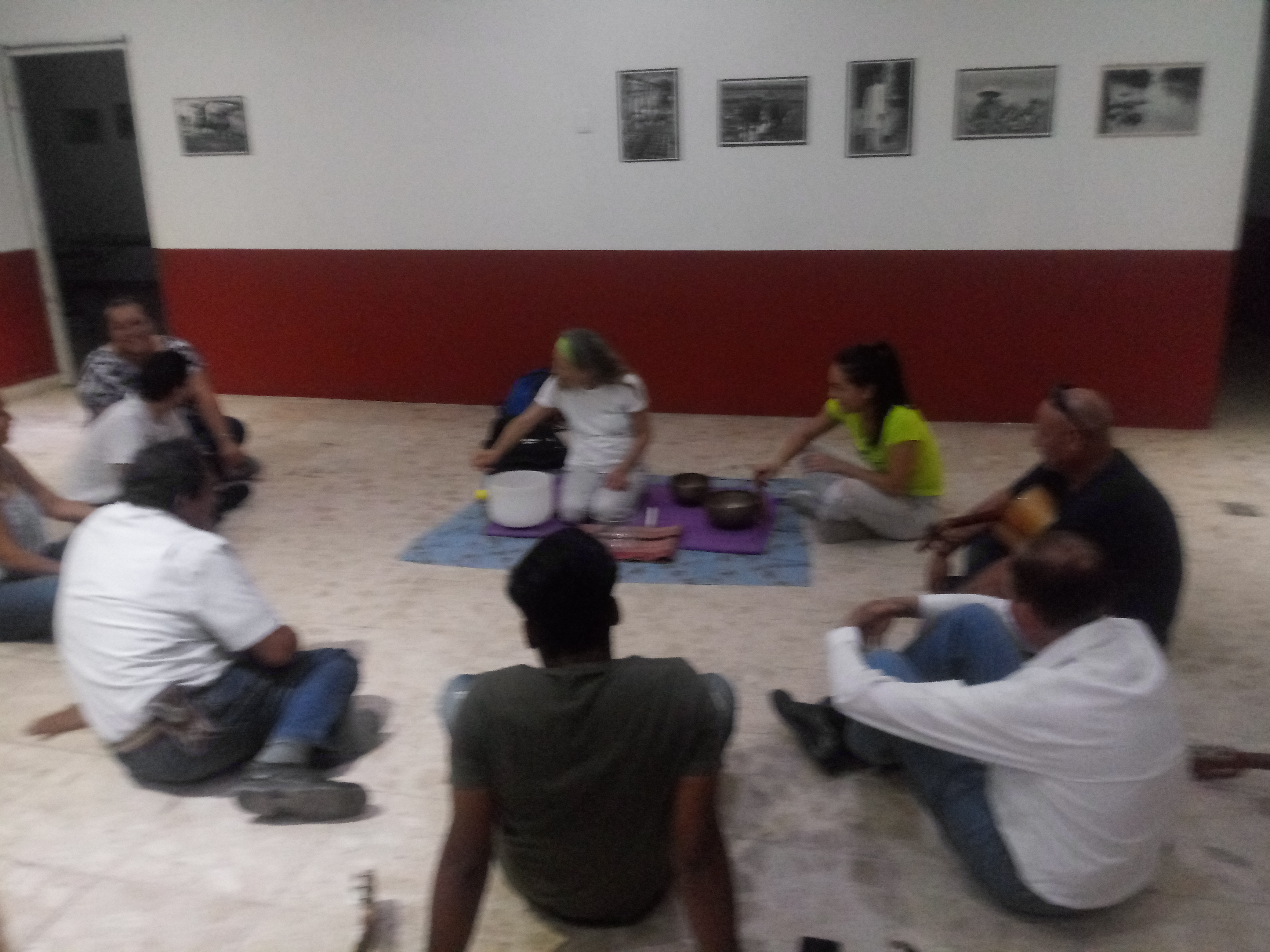 Aclaró que quien los escucha debe recostarse y cerrar los ojos mientras ella toca otras notas que sabe, provocando que entren en trance en un viaje al interior. Marilyn Festa invitó a los asistentes a tocar estos objetos, y tímidamente lo hicieron: Carlos Ríos Cheya Esparza y Verónica Ríos Jorge se decantaron por el cuarzo de metal; Paloma Montes Vallejo Jesús Melchor, prefirieron los cuencos de metal; Sócrates Lagunas Equihua y Apolinar Vergara optaron por el cuenco de cristal; mientras que Claudio Naranjo le costó lograr emitir un sonido.