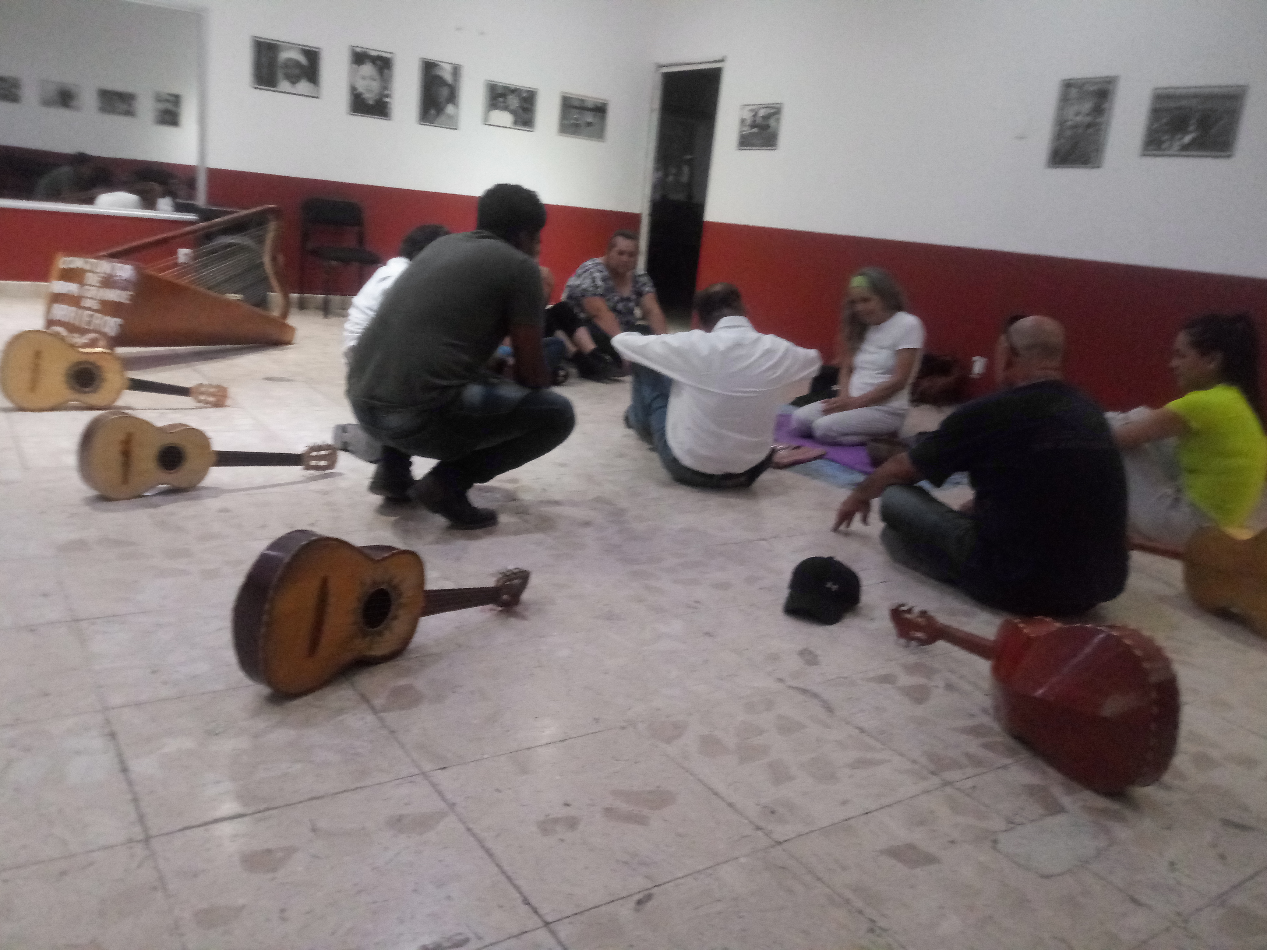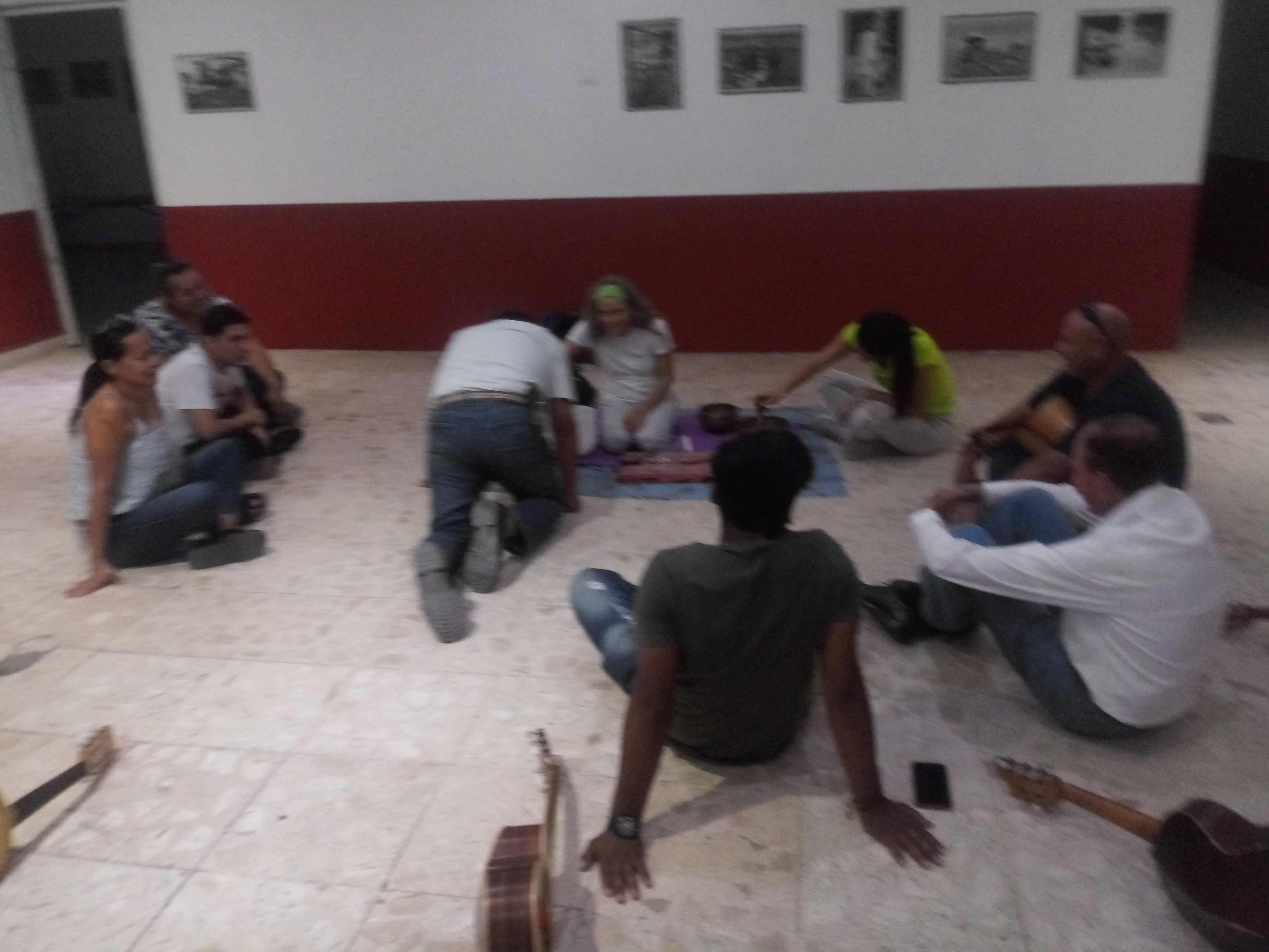 Sin ninguna preocupación abrieron un diálogo lúdico y las sonrisas se expandieron. Los músicos: Carlos Ríos,Claudio Naranjo, Apolinar Vergara , Jesús Melchor, sacaron sus instrumentos. La guitarra, el arpa, la viruela. Entonces la música y el sonido del cuarzo se unieron pero de formal paralalela imponiéndose por su fuerza el segundo. Los demás olvidaron la vida cotidiana por un momento.