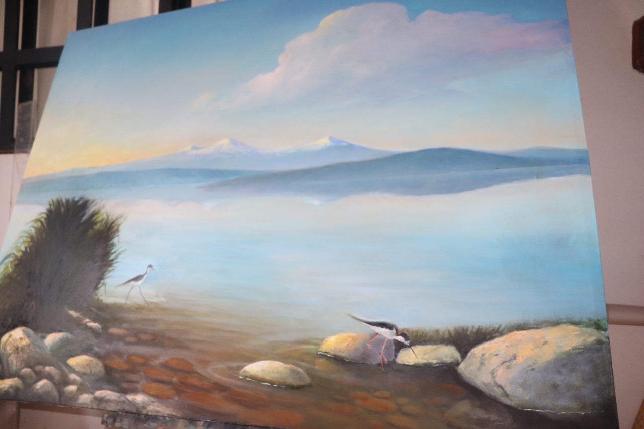 Muchos de sus cuadros son recuerdos, señala uno que tiene al lado, es un paisaje del lago de Texcoco, “ahí lo favorecí. Es válido porque en algunas ocasiones así lo veía, las nubes nos indican que son tiempos de lluvia y se alcanza a llenar “. Precisa la perspectiva aérea que logró en ese cuadro, “Leonardo da Vinci fue el primero en manejar ese término por primera vez. Se logra manejado los colores y van diluyéndose según la distancia, por ejemplo, hay esas montañas para dar sensación de lejanía, ahí se ven azules, si estuviéramos un poco más lejos tendría hacerse grisáceas, casi perdiendo el tono”.