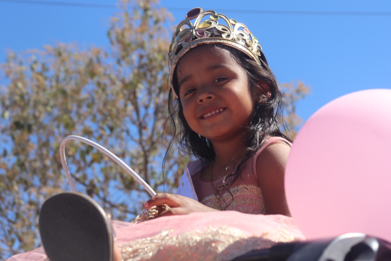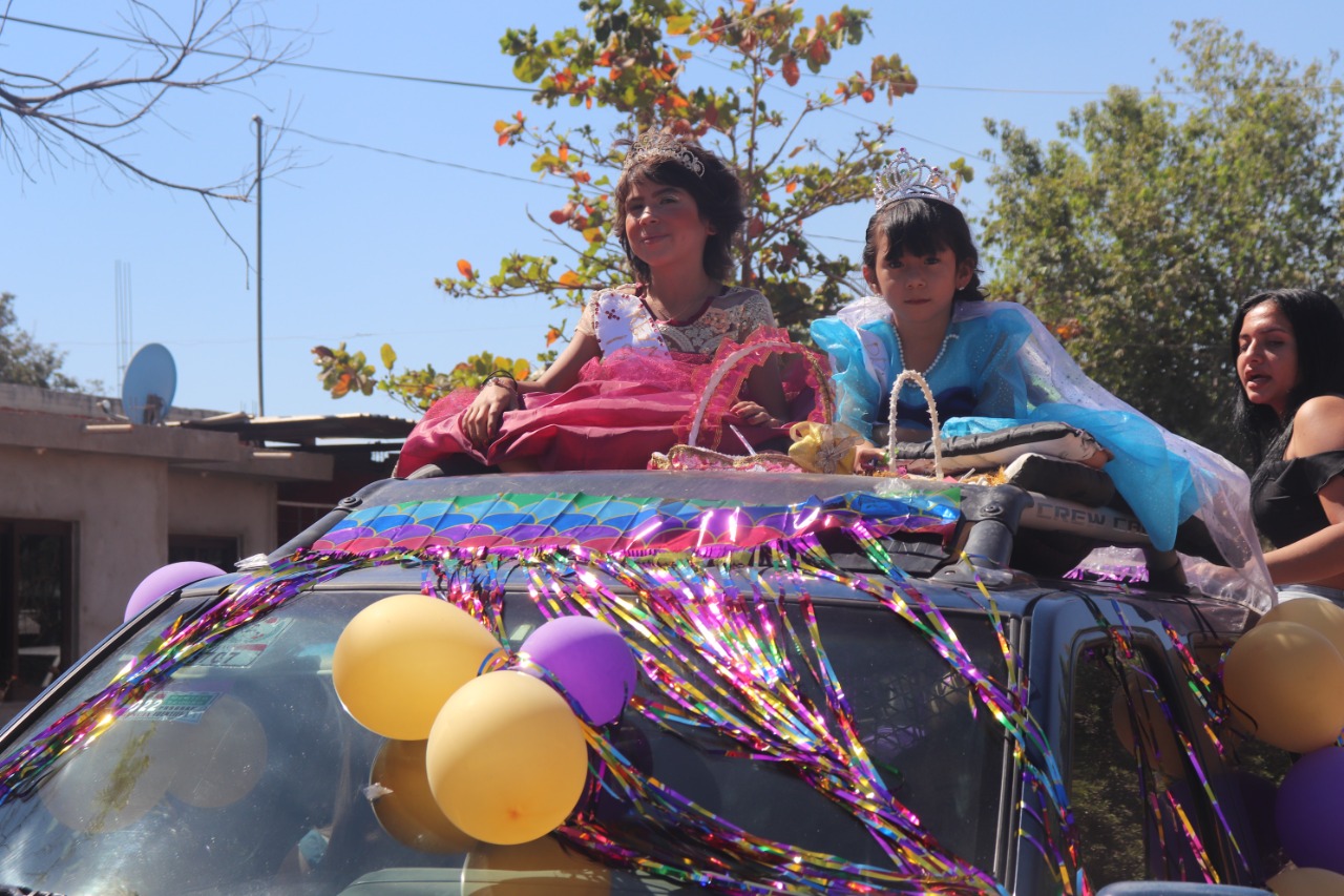 A los que de plano no les importó eso fue a los niños, esperaban ansiosos que pasaran las diferentes princesas y reinas en el toldo de sus coches o camionetas desde donde lanzaron dulces.