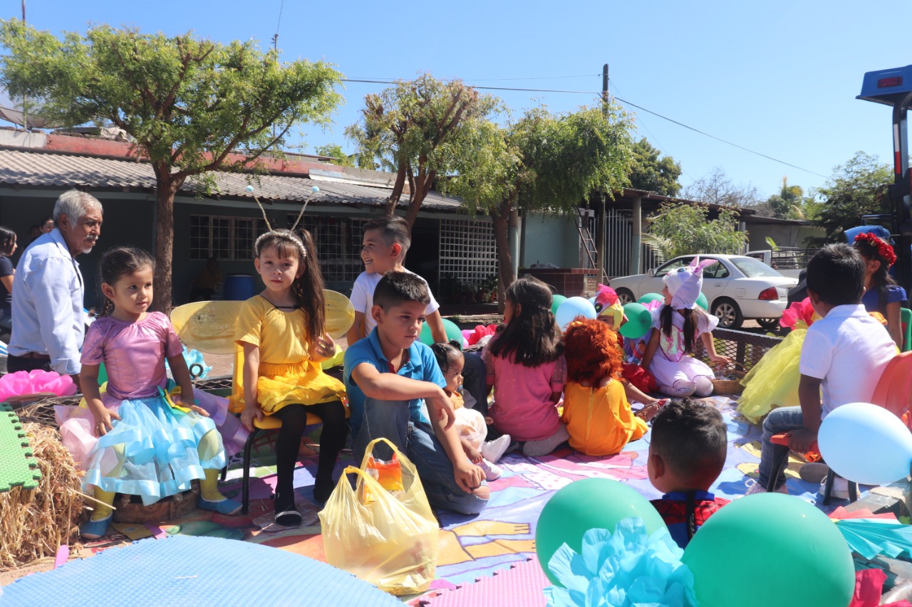 Los carros alegóricos aparecieron, ahi se podían ver a los niños de kinder quienes se disfrazaron: uno de tigre, otro de hombre araña, una niña de princesa y otra de coneja. Al lado iban las mamás orgullosas tomando fotografías.