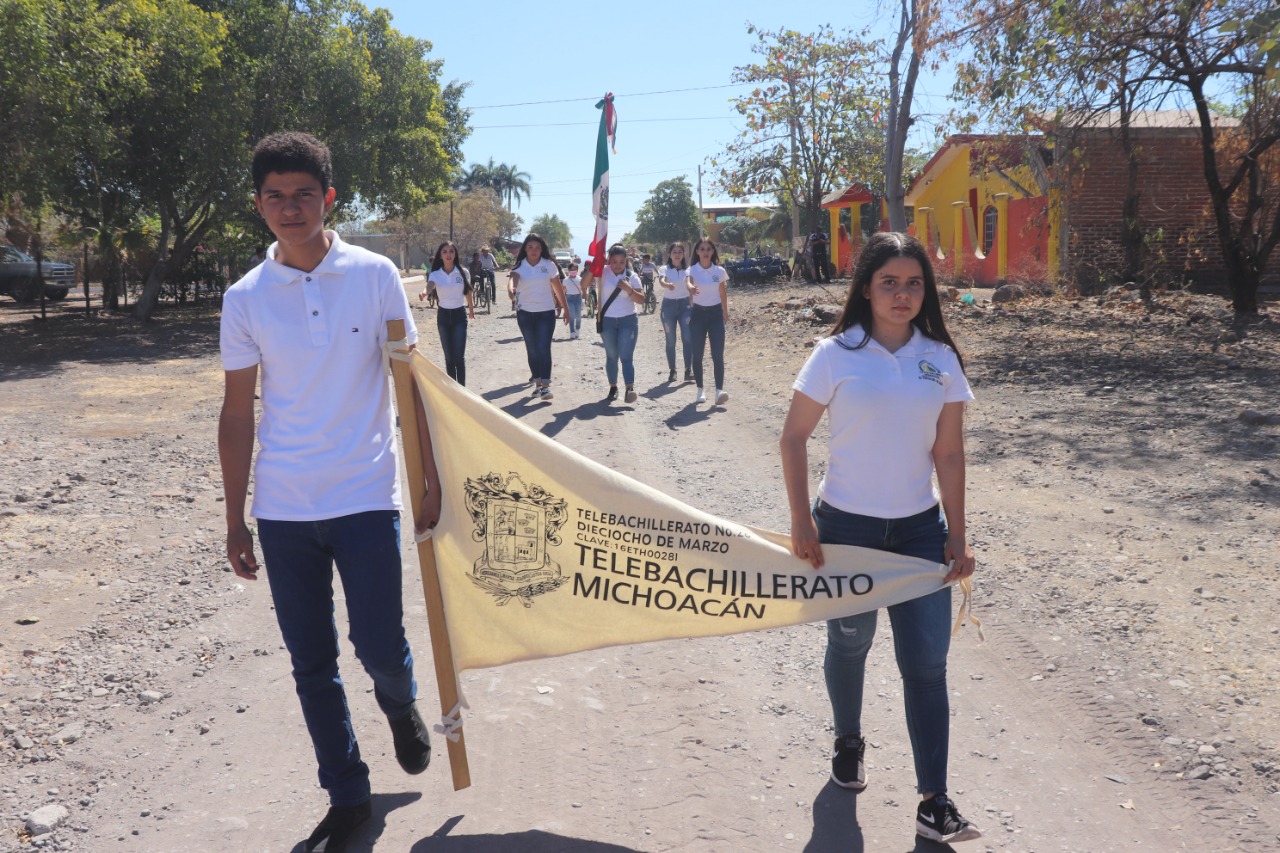 En la retaguardia del desfile marcharon el telebachillerato 18 de marzo, la banda de guerra y la escolta, pertenecientes a la telesecundaria 18 de marzo, bajo la dirección de Pascual de la O Medina. Iban orgullosos de tocar para su gente.