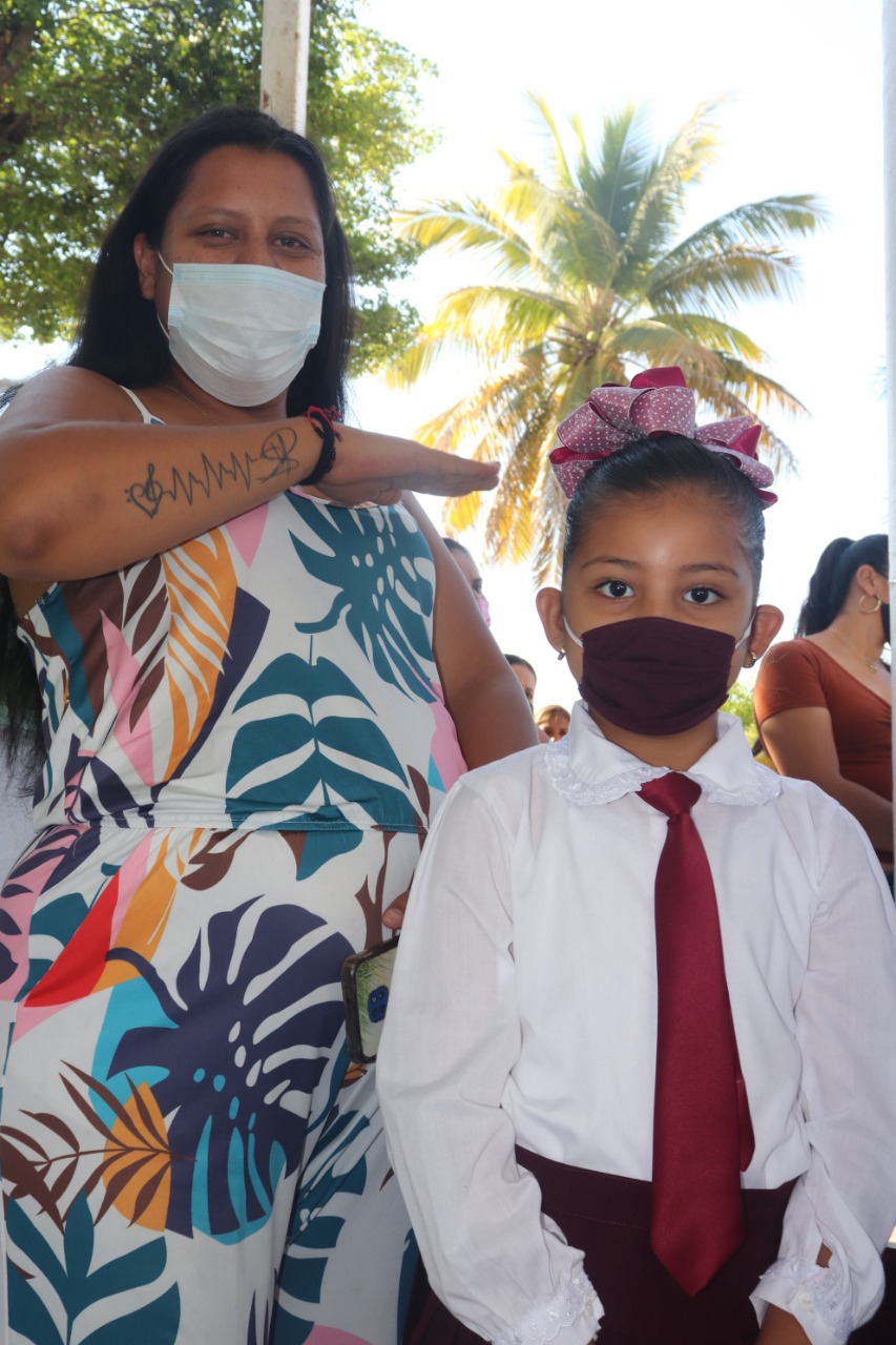 Con aplomo, la niña Maria del Carmen Martínez dio el discurso sobre el Benemérito de las Américas, mientras que Azhull Alejandra Flores Vera ejecutó, sin problemas, el himno nacional.