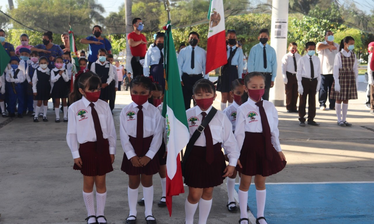Con aplomo, la niña Maria del Carmen Martínez dio el discurso sobre el Benemérito de las Américas, mientras que Azhull Alejandra Flores Vera ejecutó, sin problemas, el himno nacional.