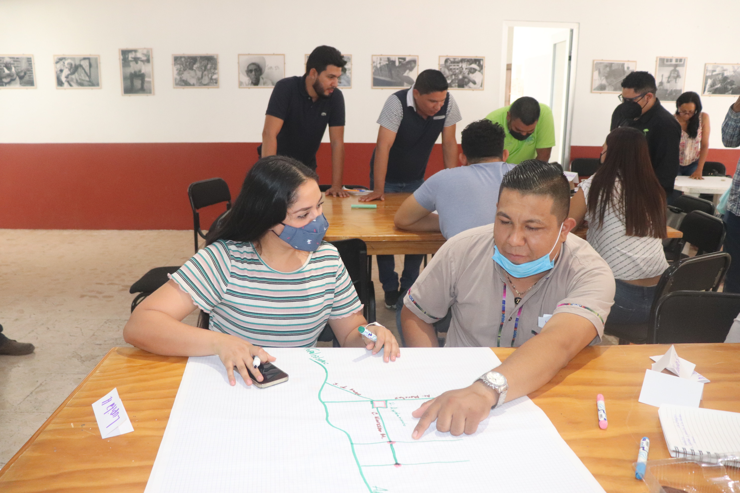 En este punto del taller los equipos de trabajo realizaron el mapa de la cabecera de Buenavista y localizaron las zonas de riesgos con el objetivo de tomar las decisiones correctas ante un eventual acontecimiento fuera de lo normal.