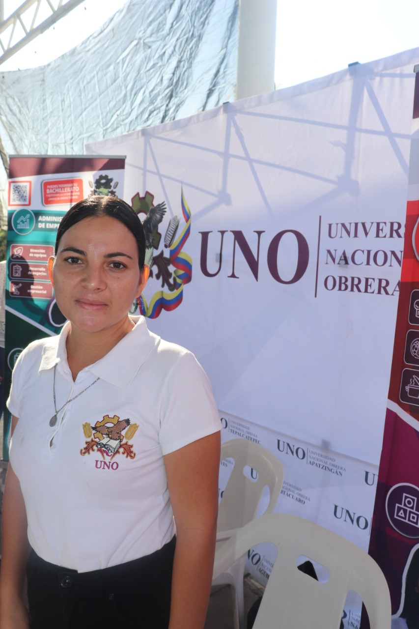 Uno de los estands más destacados fue el de Universidad Nacional Obrera, (UNO), María Guadalupe Mendoza Valencia, quien es la coordinadora de la Universidad en el campus de Tepalcaltepec, donde nació el proyecto en el 2018.