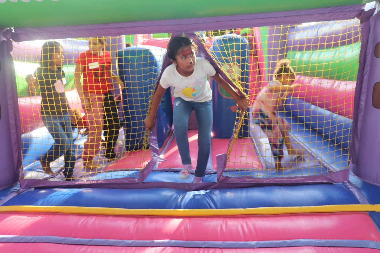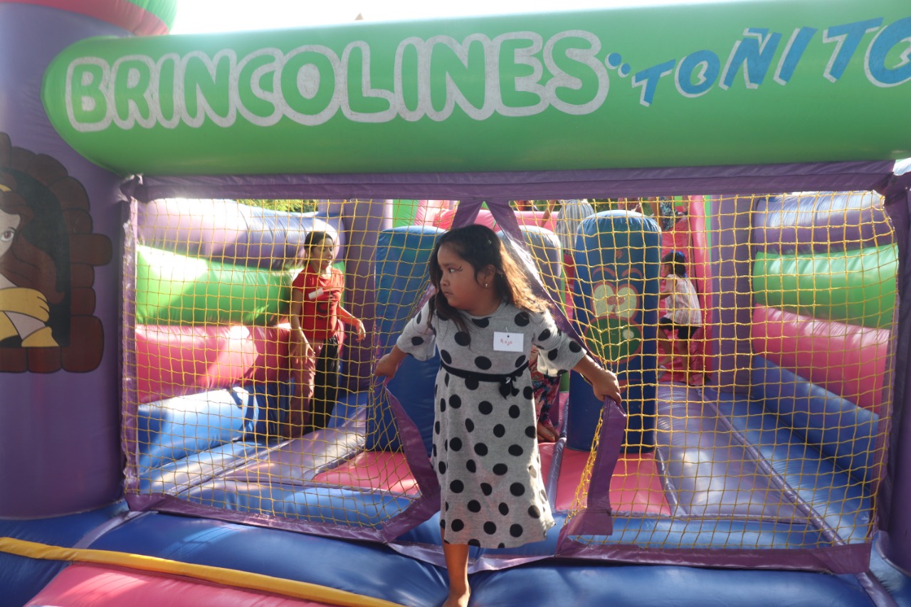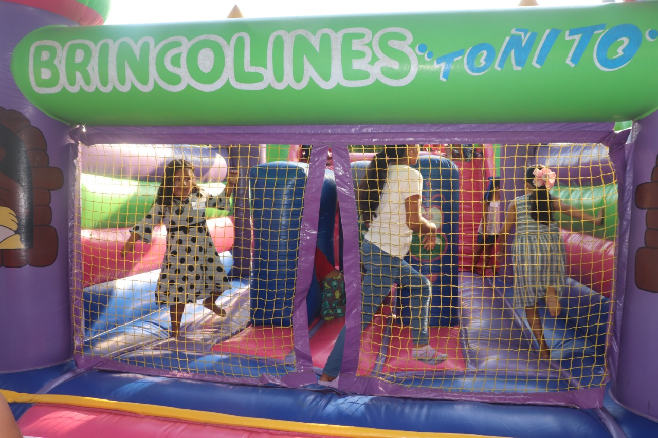 Risas y gritos se desbordaron en el lugar. Todos querían ir a los tres brincolines que estuvieron ubicados al pie del asta de la bandera. Eso si, uno de ellos era para los más pequeños, otro para las niñas y una más para los niños.