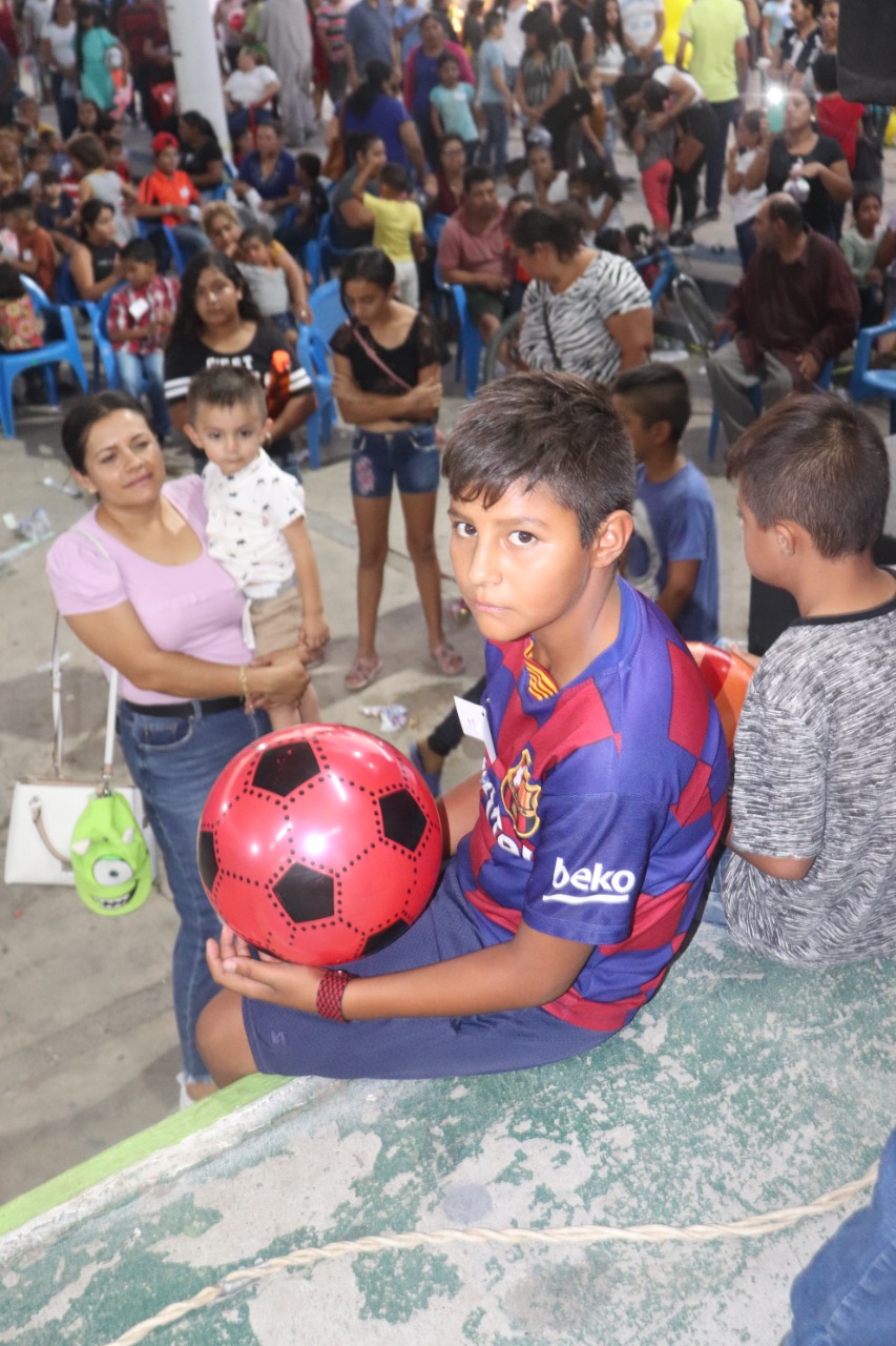 Luego preguntó dónde estaban los niños y como respuesta escuchó un grito ensordecedor de los pequeños. Entoces volvió a preguntar que si querían regalos y si estaban dispuestos a todo. La respuesta de los infantes fue un rotundo sí. Finalmente agradeció a nombre del H Ayuntamiento la presencia de los asistentes y prometió que pasarían una tarde excelente.