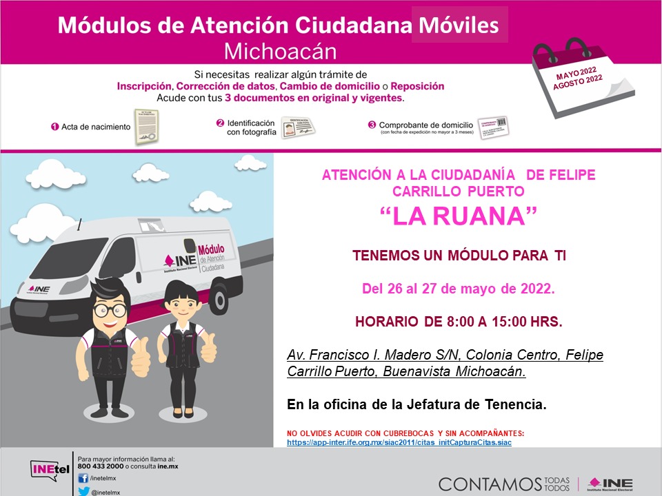 Módulo del INE en la Ruana del 26 al 27 de mayo