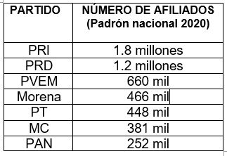 Los únicos dos partidos que rebasan el millón de afiliados son el PRD con 1.2 millones y el PRI con 1.8 millones. ¡A nivel nacional!