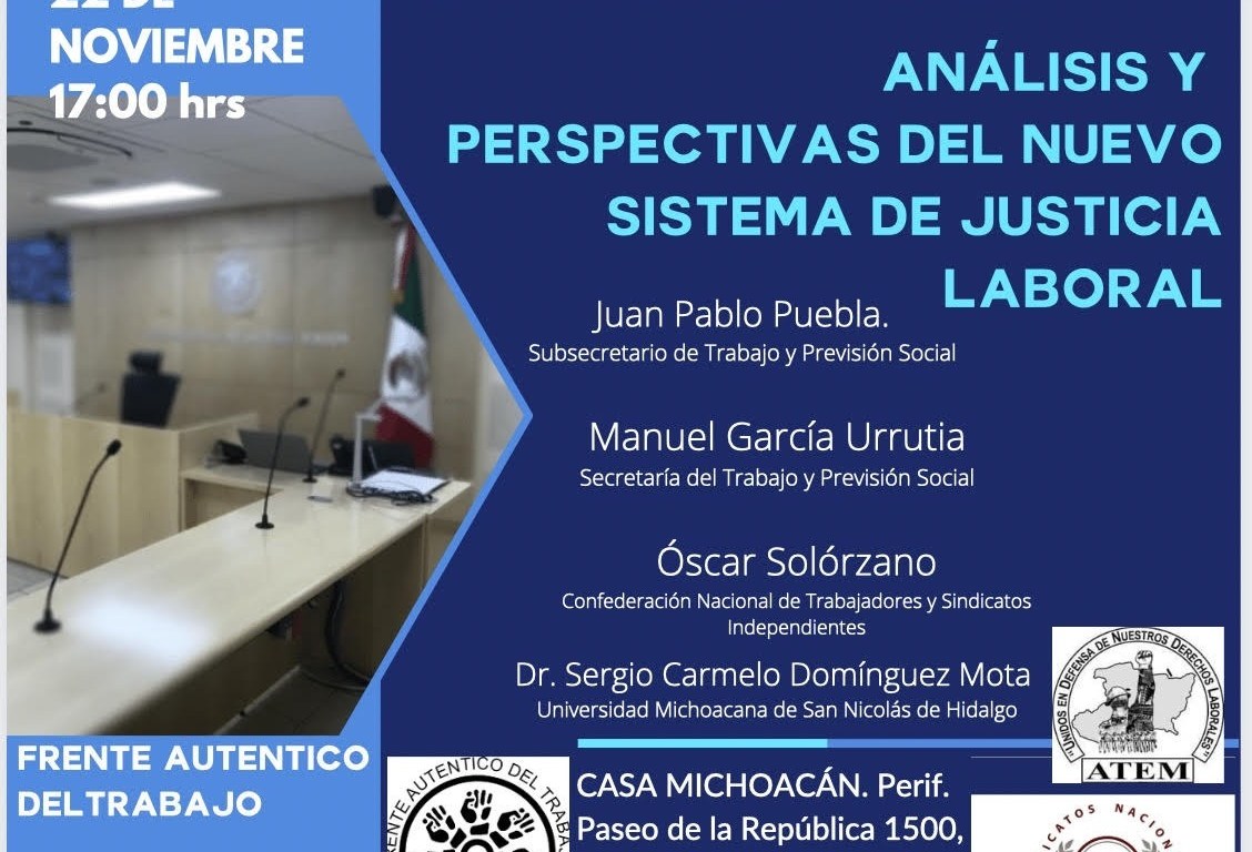 A fin de analizar el Nuevo Modelo de Justicia Laboral que inició su última fase en todo el país en los primeros días de octubre pasado, autoridades laborales del Estado de Michoacán, empresarios, abogados y sindicatos se sentarán en la Mesa de la Casa de Michoacán, el próximo 22 de noviembre por la tarde, para hacer una análisis y ver las perspectivas de dicho nuevo modelo laboral.