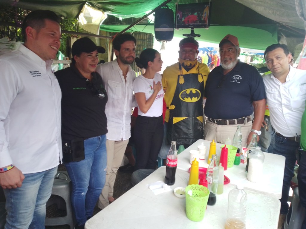 El hacer el camino de una calle llevó 10 minutos, en el cual la autoridad municipal saludaba y se tomaba fotos con quien lo solicitara. Al fin llegaron al comedero de Batman, quien solicito ofreció gel antibacterial a la visita; esta enseguida se fue directo al comal donde sintió el calor de la plancha en la que se cocinan las tortillas y se mezcla el queso con champiñones, papa con chorizo, carne asada, tinga y de bistec.
