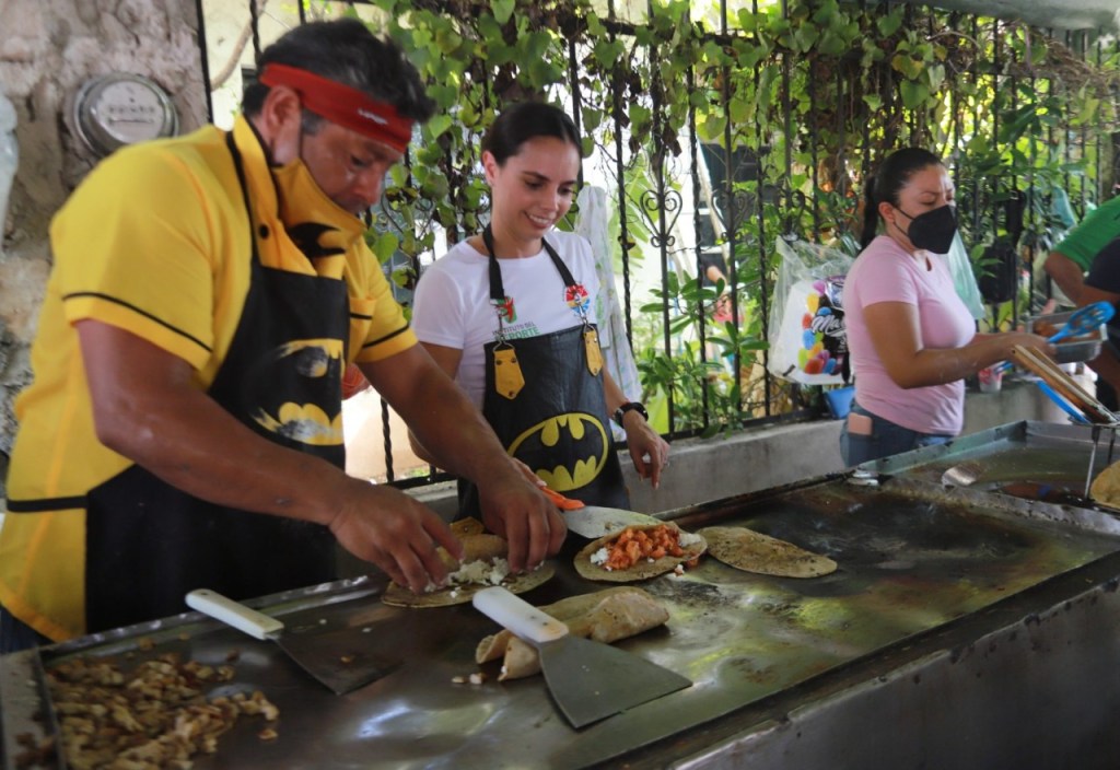 Buena pa’ comer salió una flaquita bonita, batipresidente, por un rato, en una visita dominical al territorio, de los tianguistas verdes, ella misma, preparó su quesadilla y la de su cónyuge, sí, la presidente municipal de Benito Juárez Ana Patricia Peralta de la Peña, recibida por su anfitrión, el dirigente de la Unión de Tianguis y Comerciantes Ambulantes del estado de Quintana Roo Melitón Ortega García.