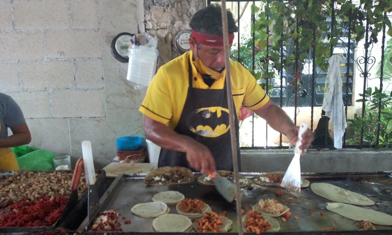 Momentos antes de la llegada del personaje, Batman sudaba y sudaba la gota gorda y la camiseta (característica del personaje de las series y películas), no era para menos, su lugar estaba con todas las mesas ocupadas, llovían peticiones de quesadillas, huaraches y sopes.