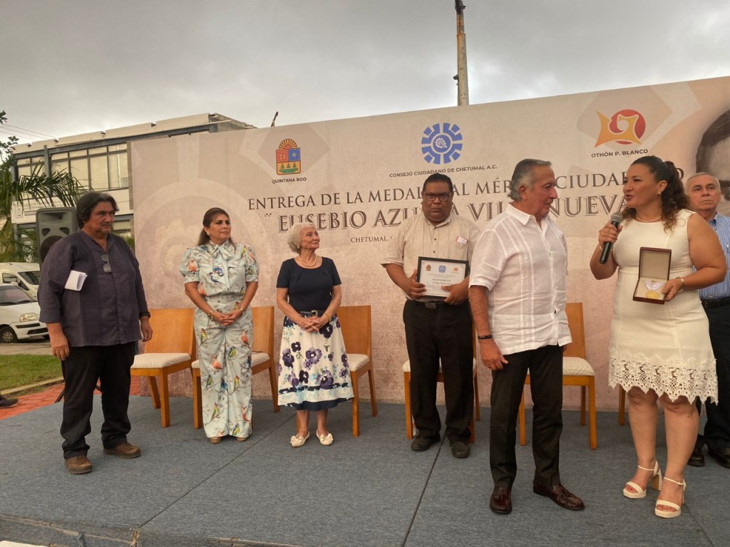“La gente de donde venga, bienvenida, les abrimos los brazos siempre; cualquier persona puede venir, desarrollarse en el sur, no tenemos complejos, todos somos iguales; me siento orgulloso, muy orgullosos de ser chetumaleño”, afirmaba Eusebio Azueta Villanueva, fundador del Consejo Ciudadano de Chetumal, cuyo nombre lleva la medalla que se entregará cada dos años.
