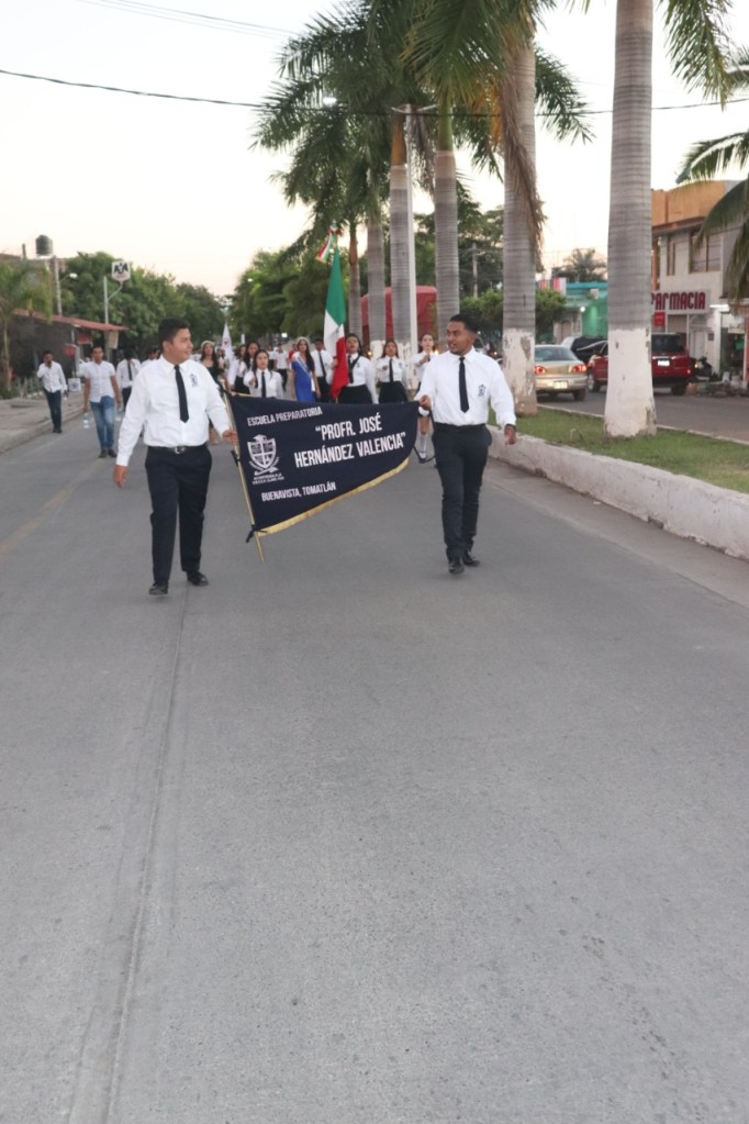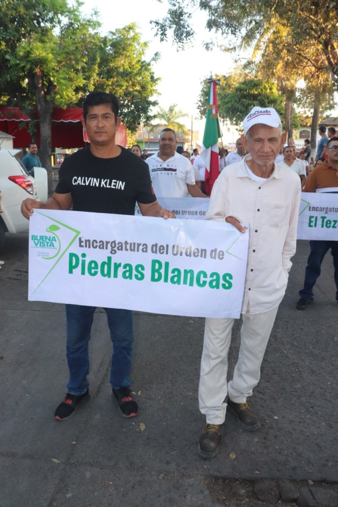 A la cabeza de la marcha estuvo el presidente municipal, Sergio Báez Torres, acompañado por el secretario del Ayuntamiento de Buenavista, el maestro en Derecho, Héctor García Ruelas; la síndico Cecilia Bonilla Lara, la presidenta del sistema DIF municipal, Georgina Ramos Equihua; los integrantes del cuerpo de regidores: Gloria Estela López Villanueva, Noemí Meraz Torres, Saharay Espinoza Martínez, Jordán Jesús Gabriel Torres, Jorge Soto Castillo, Leonel Figueroa Torres.