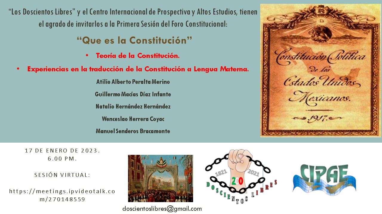 Los Doscientos Libres y el Centro Internacional de Prospectiva y Altos Estudios le invitana la Primera Sesión del Foro Constitucional: