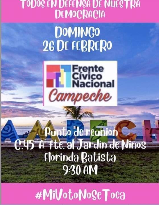 · Por eso, cerca de 200 Organizaciones No Gubernamentales han convocado a la sociedad civil, al pueblo todo, a salir a las calles nuevamente. Este 26 de febrero, en el zócalo de la Ciudad de México, y en las plazas de más de 80 ciudades del país y del extranjero, el pueblo unido saldrá a refrendar su convicción democrática y su inconformidad por la pretensión de socavar nuestro sistema electoral. Ahora, la consigna es más fuerte: ¡Mi voto no se toca!, ¡La democracia no se toca! y ¡La Suprema Corte Sí Decide! Esta manifestación expresará dos convicciones: primera, que los mexicanos adoptamos la democracia liberal como el régimen para elegir a nuestros representantes populares; y, segunda, que confiamos en la Suprema Corte de Justicia de la Nación (SCJN) la salvaguarda del orden constitucional y del Estado de Derecho que rige nuestra convivencia social y política.