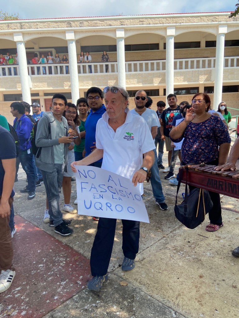 En la manifestación de hoy lunes en la explanada principal, el rector ni siquiera aceptó bajar a recibir el documento con los planteamientos. A López Mena le gusta más el escritorio que el territorio.