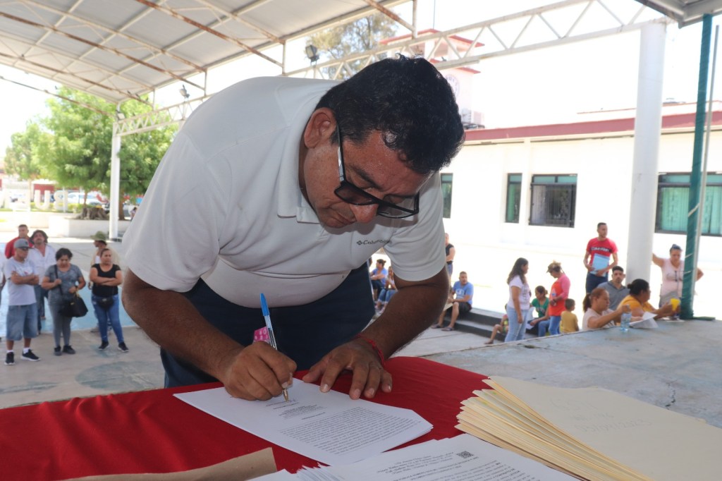 El director de Desarrollo Urbano municipal, Francisco Javier Soto Madrigal, y el jefe de departamento de escrituración de Secretaría de Desarrollo Urbano y Movilidad (SEDUM), Aldo Vergara García, lograron llevar a buen puerto la jornada. Vale la pena reconocer el esfuerzo de la notaria M.A. Azucena Chávez, quien fue apoyada por la licenciada Elsa Sosa.