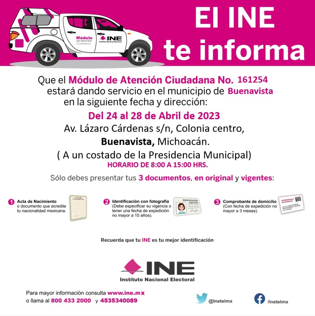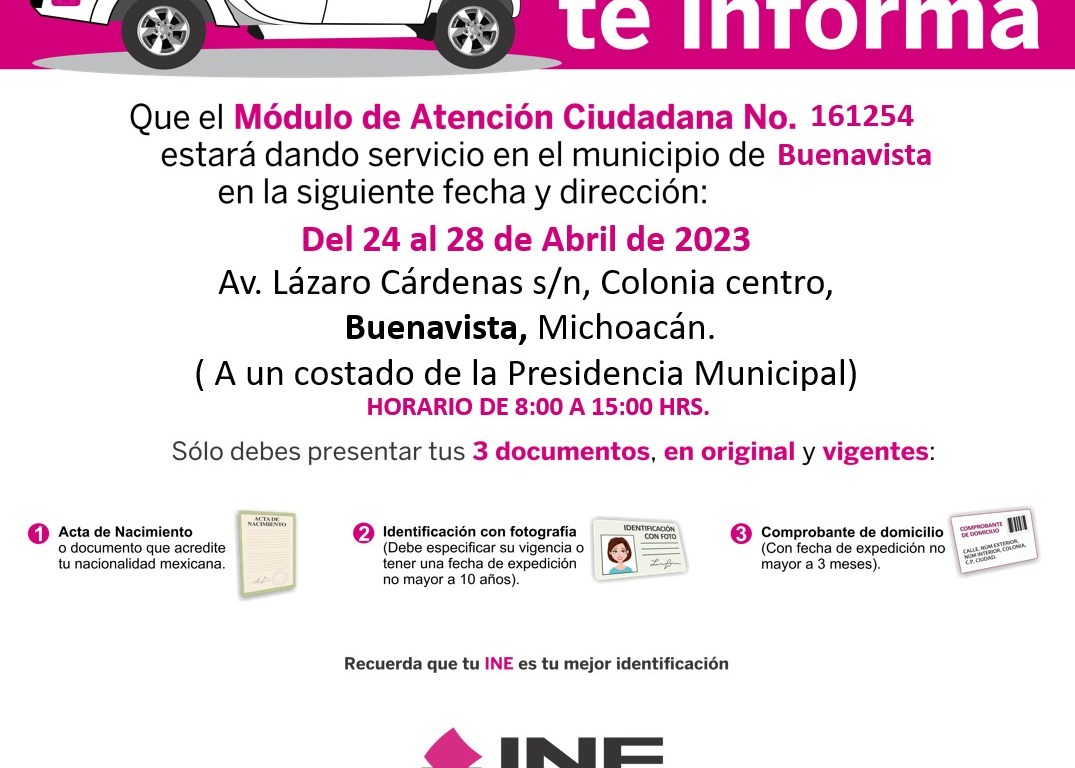 El INE en Buenavista Tomatlán del 24 al 28 de abril