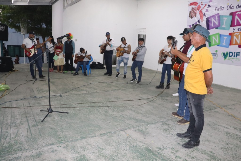 El grupo musical Voces y Guitarras cantó las mañanitas a los niños; ahí se vio al director de cultura municipal, Claudio Rodríguez Naranjo.